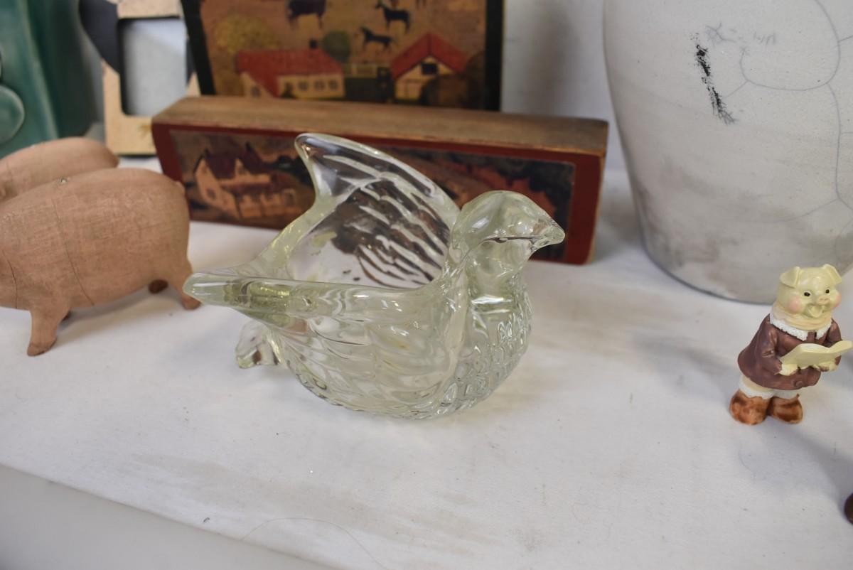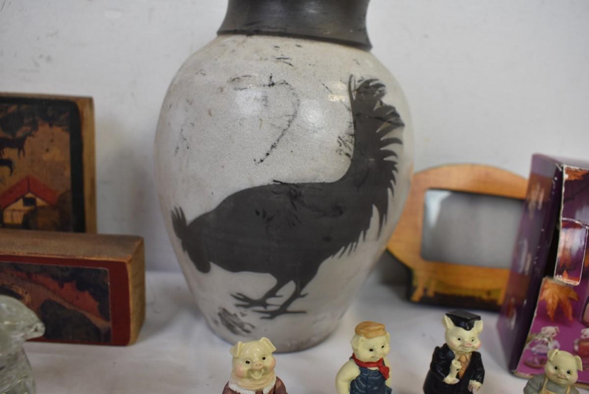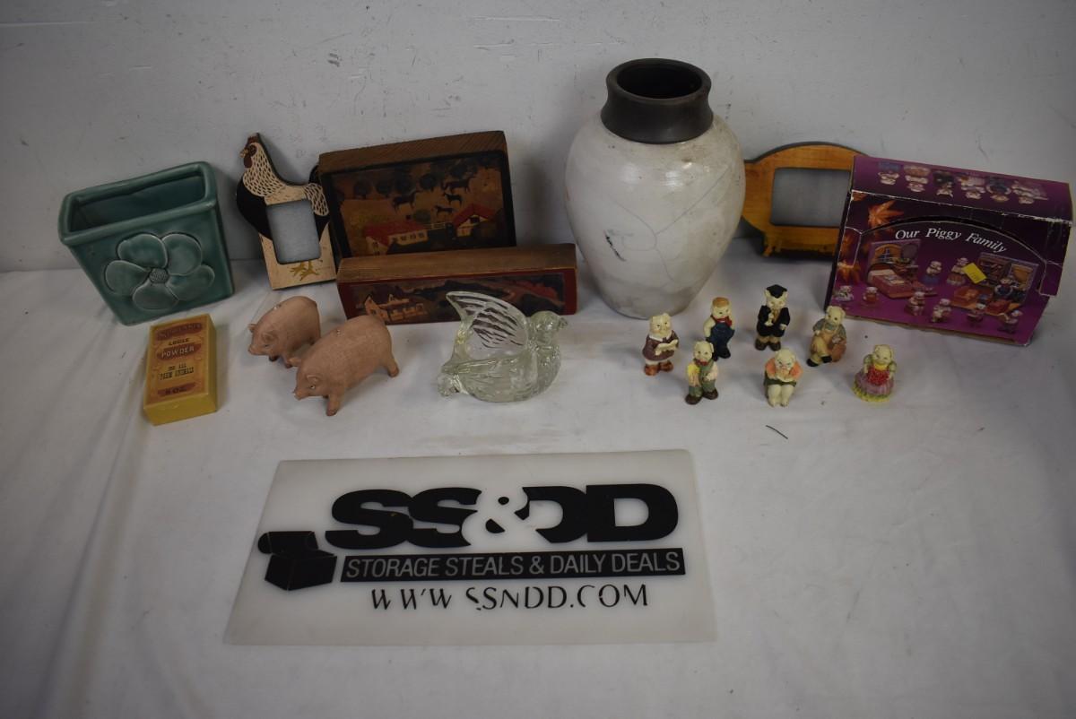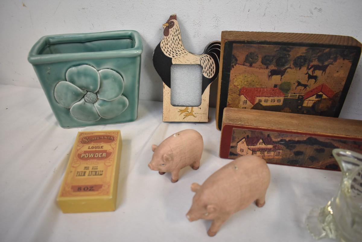 Farm Animal Décor: Piggy Family Figurines, Green Flower Ceramic, Chicken Vase