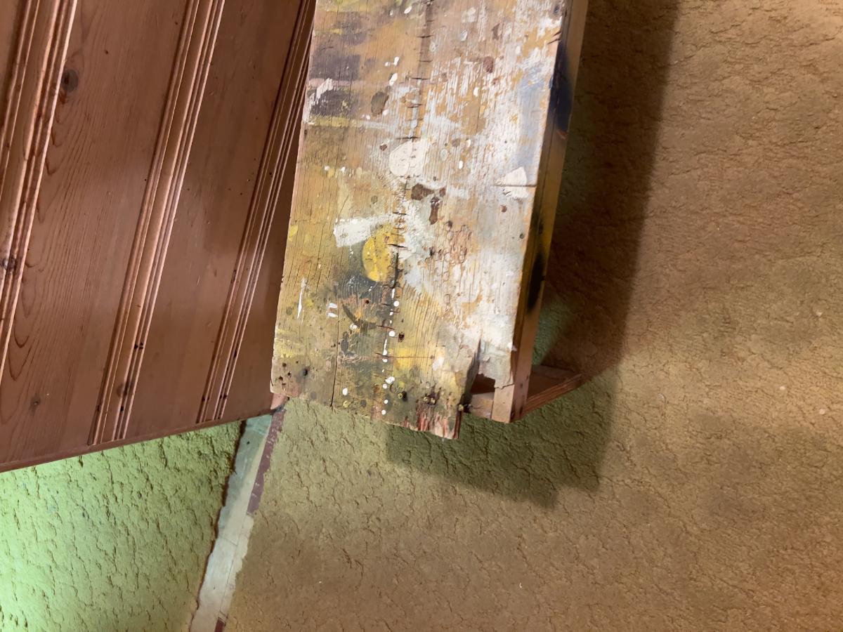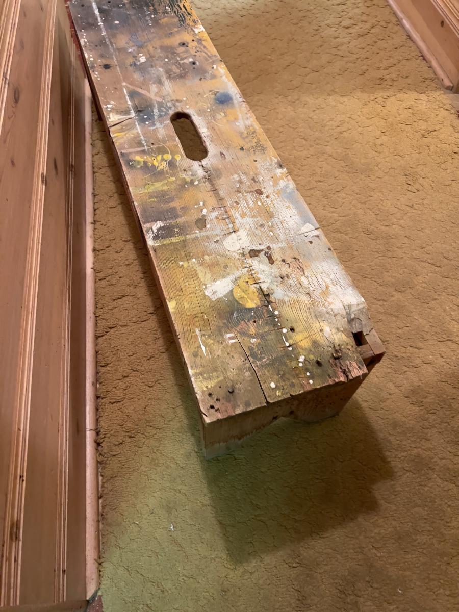 A Chunk missing from one corner. PINE Wood. Measures 46 x 12 x 13