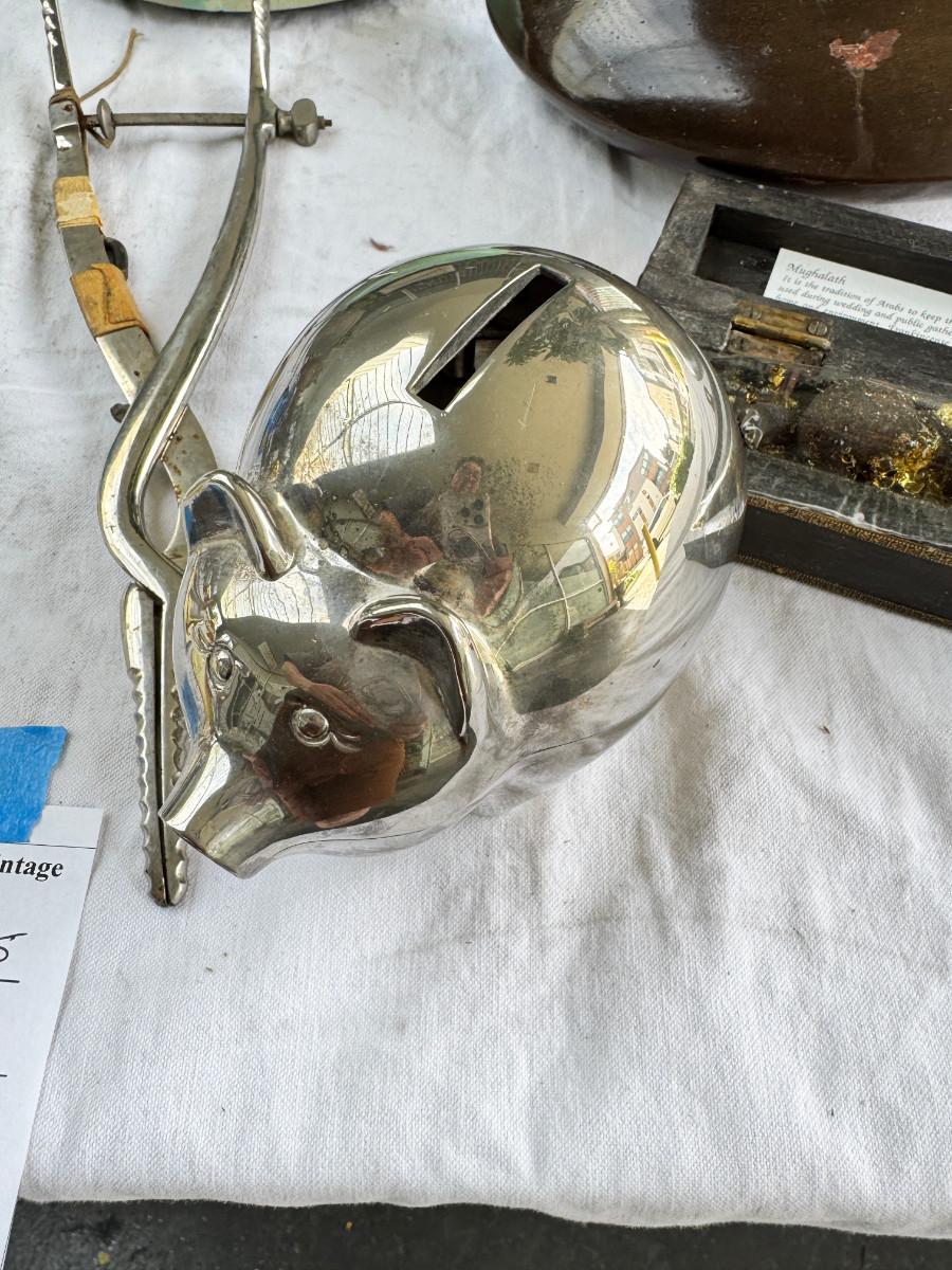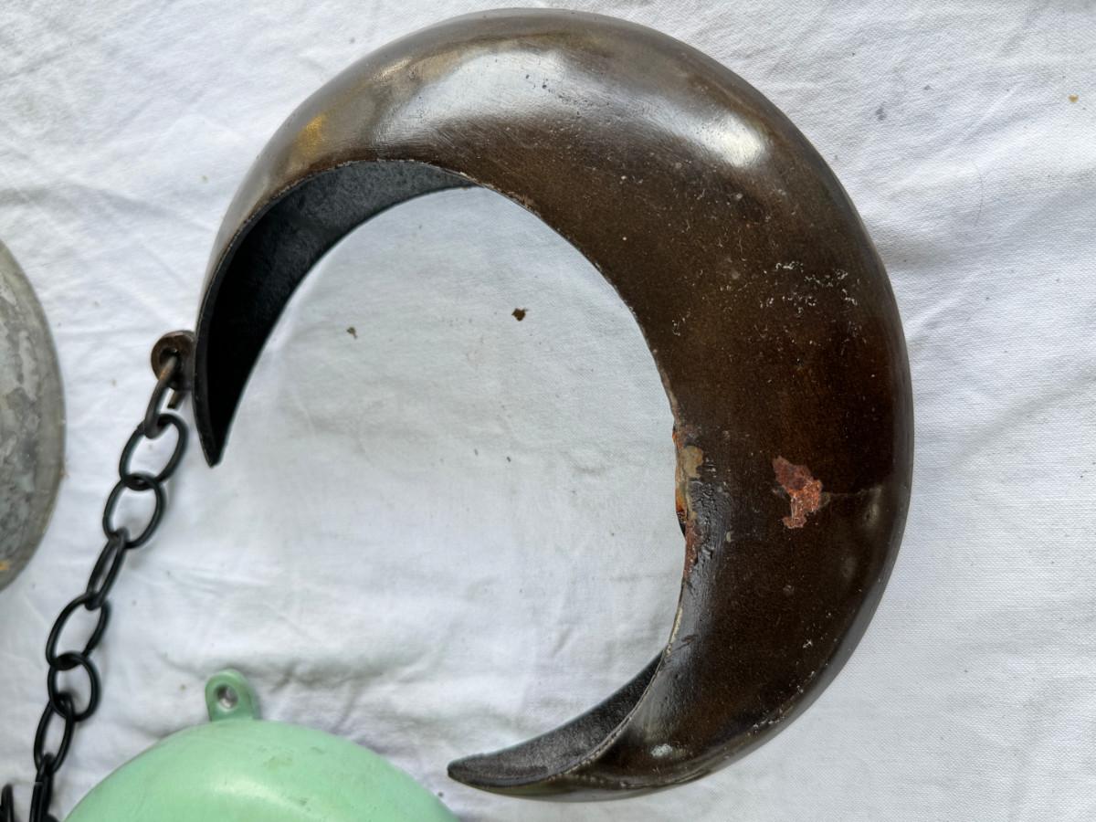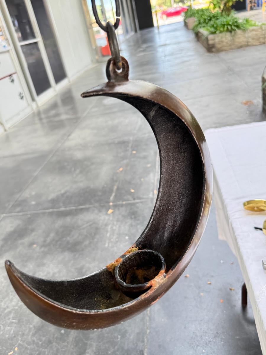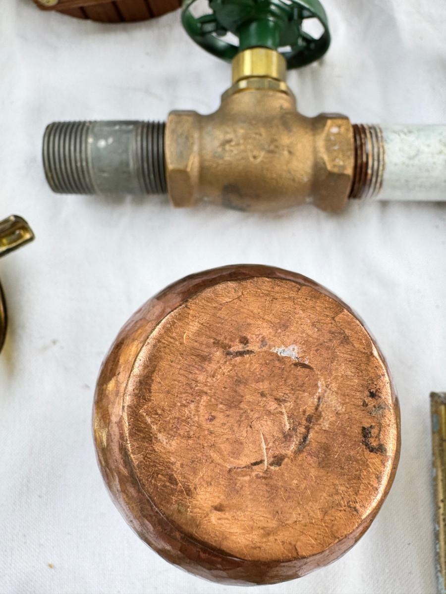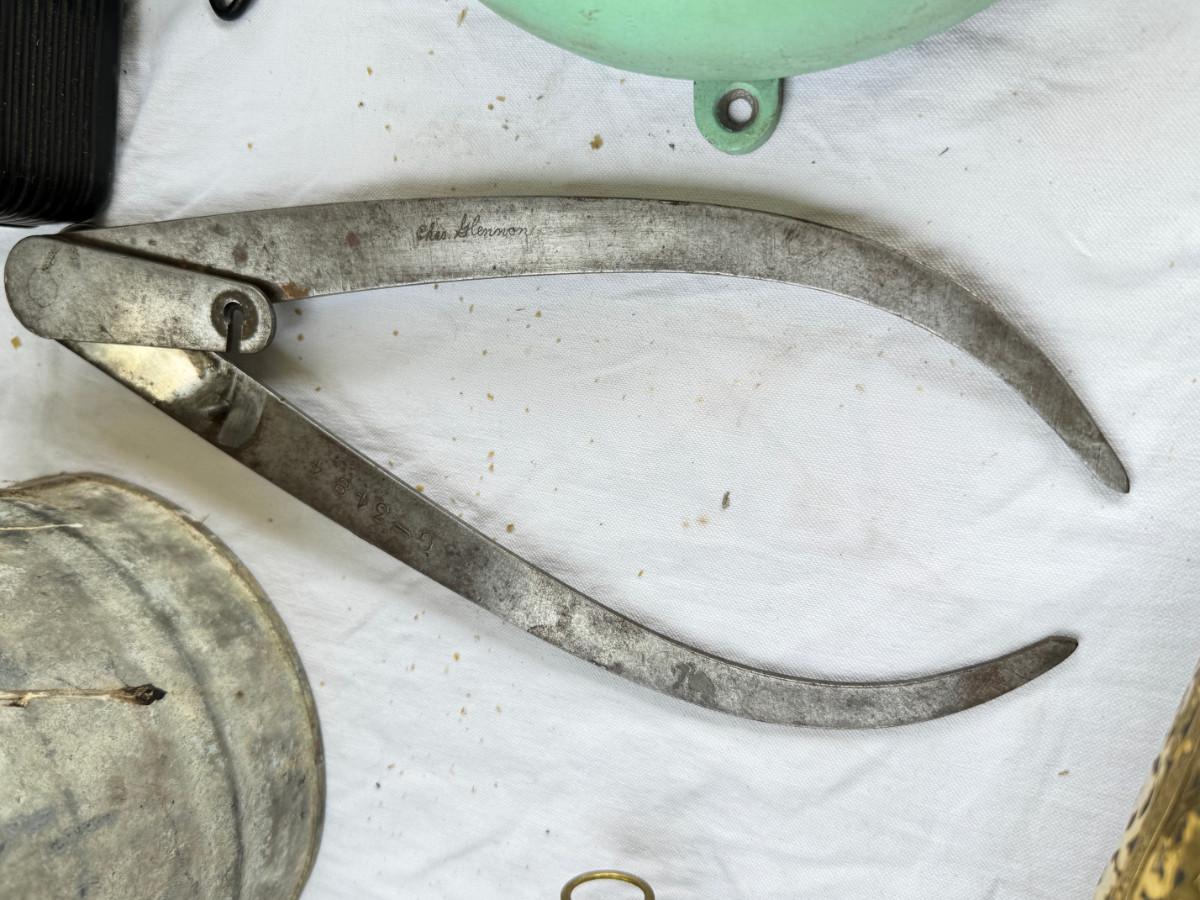 Redwood souvenir wagon, rustic farm cans, 2 calipers, Ampermeter, Untested, Los Angeles drive over bell ( not working) Incense, Hanging half moon candle holder with chain ( some rust) Small copper pitcher, blue white glass pitcher small crack. No Shipping