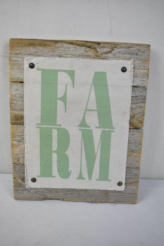 Farm Wood & Fabric Wall Decor Green & White 11" x 13"