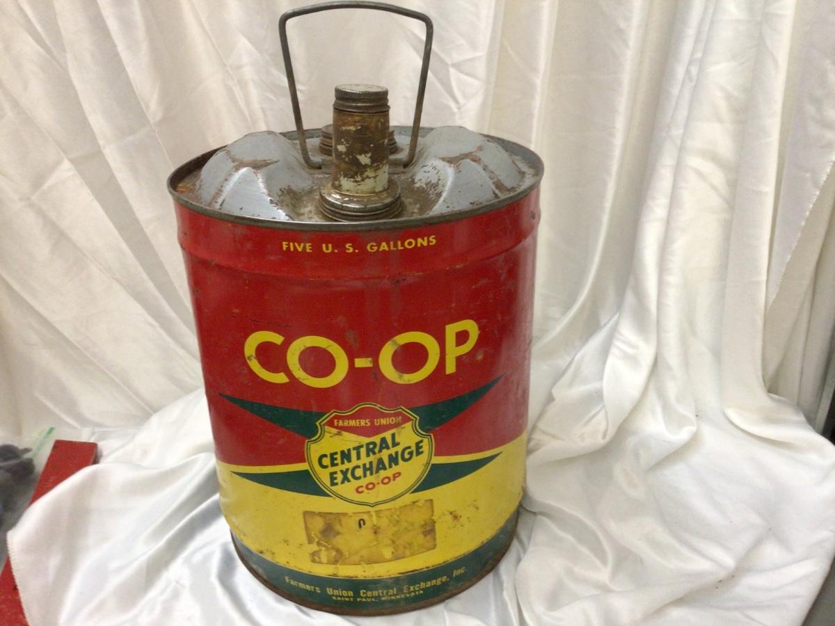 You get a great Farmers Union Coop central exchange 5 Gal can. It is used and has a dent.