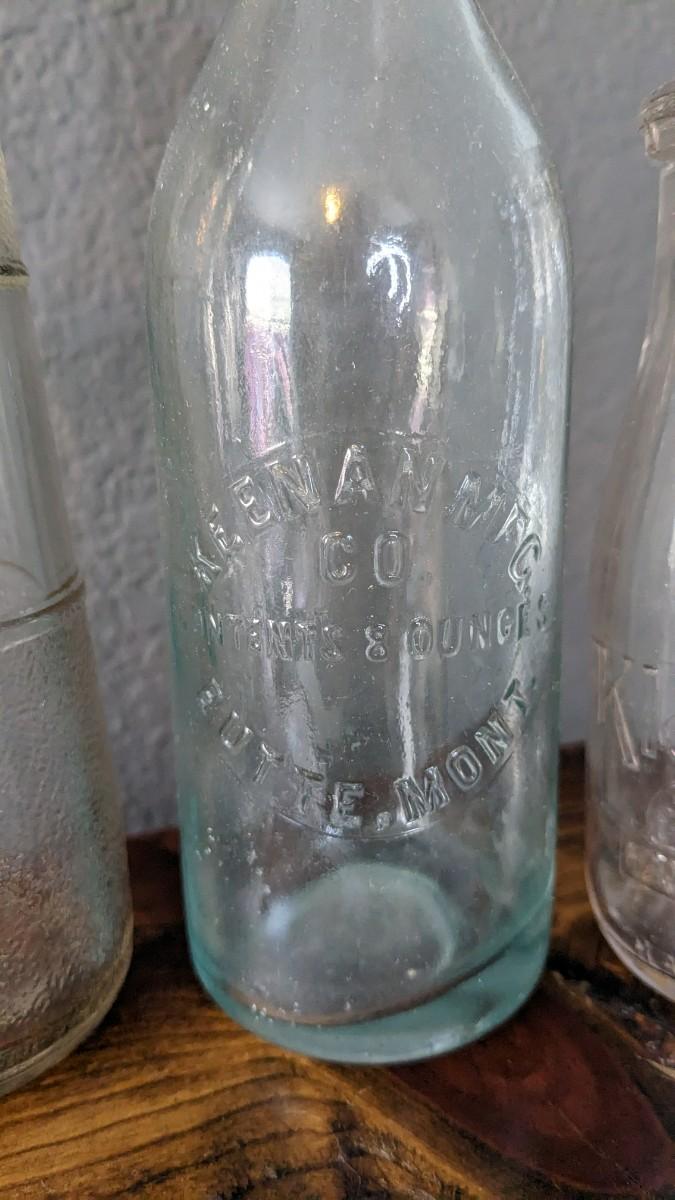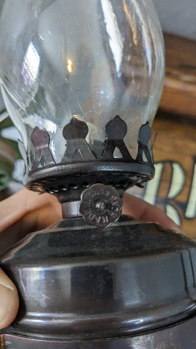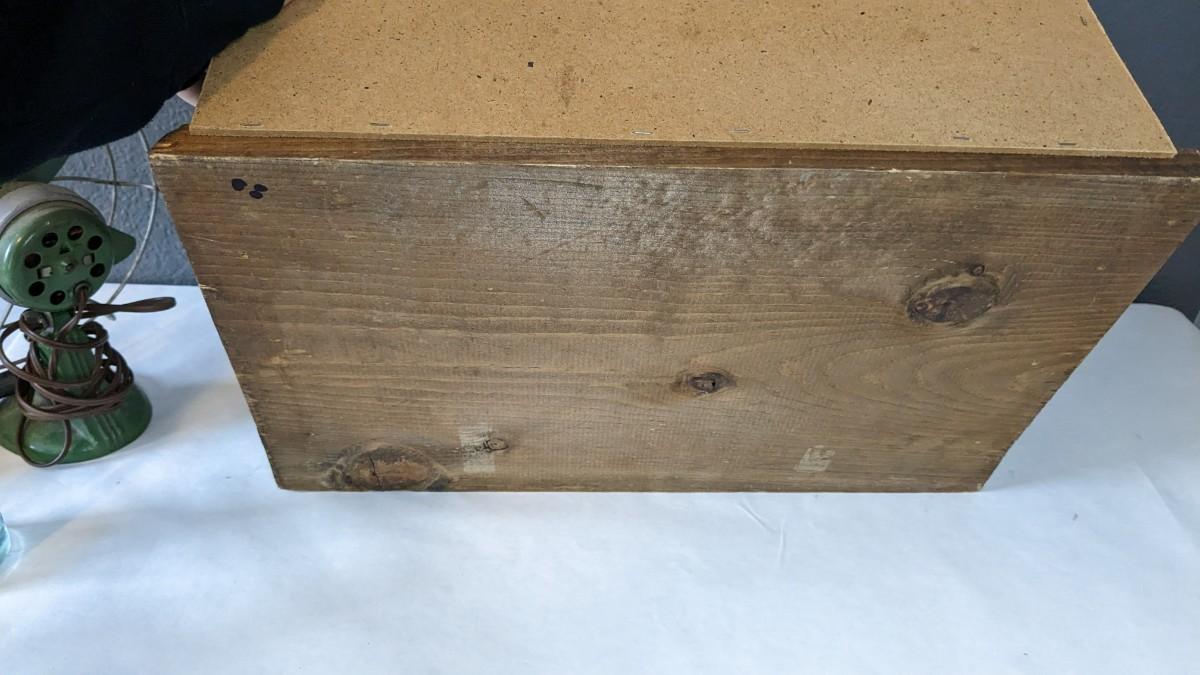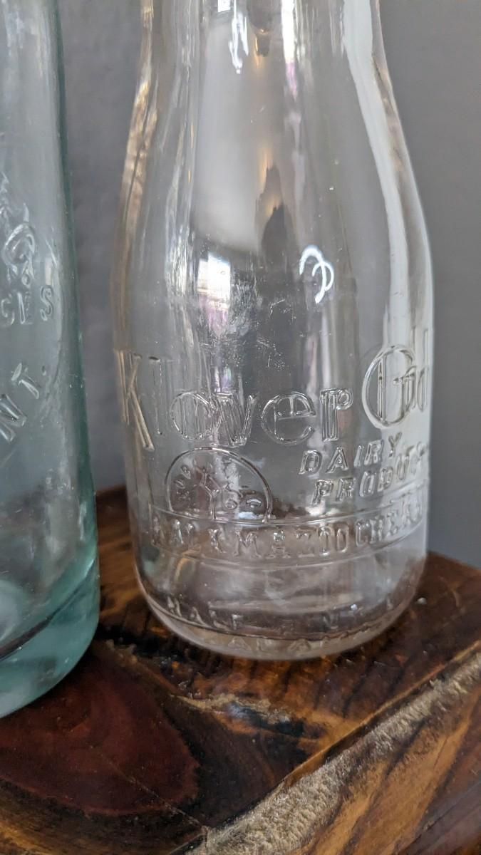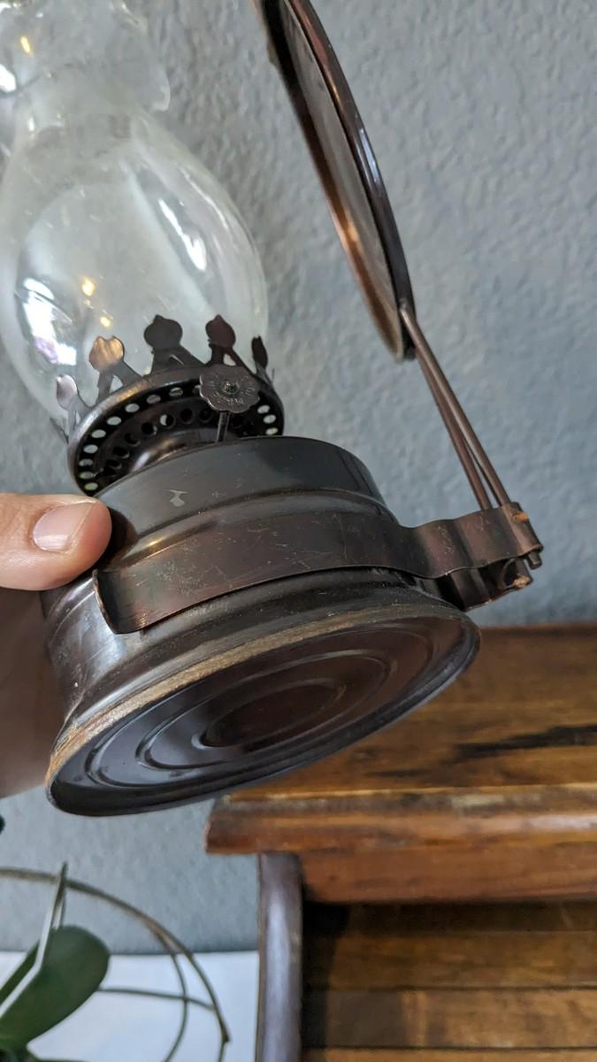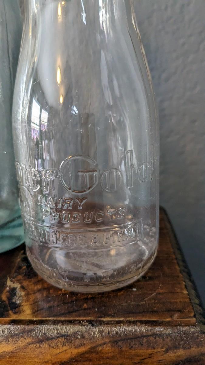 3 milk bottles, 2 varied bottles, non-functioning small wire fan, reproduction wall hanging oil lamp thats functioning, and wood roll top bread box. No shipping