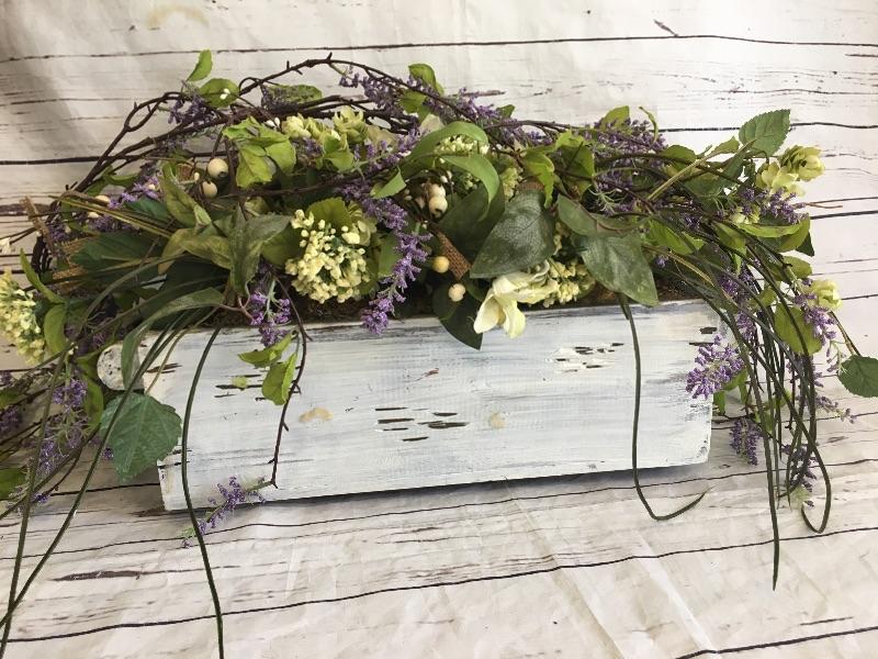 Farmhouse Style Wood Vintage planter with floral
