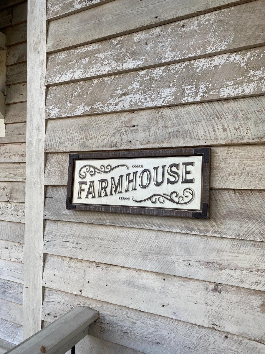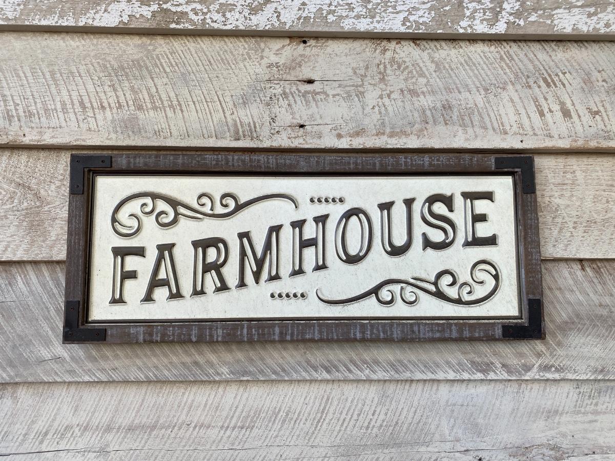 Metal with wood frame. 11”h x 28”l. . Front porch
