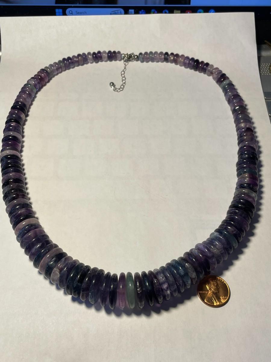FAS Designer Huge Amethyst Quartz Graduated Disc Beaded Necklace 24-26" Adjustable Fashion Necklace w/Sterling Chain & Clasp. $7 DOMESTIC SHIPPING.