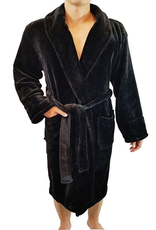 Fasciino Luxury Black Robe, One Size, Microfiber Polyester - New