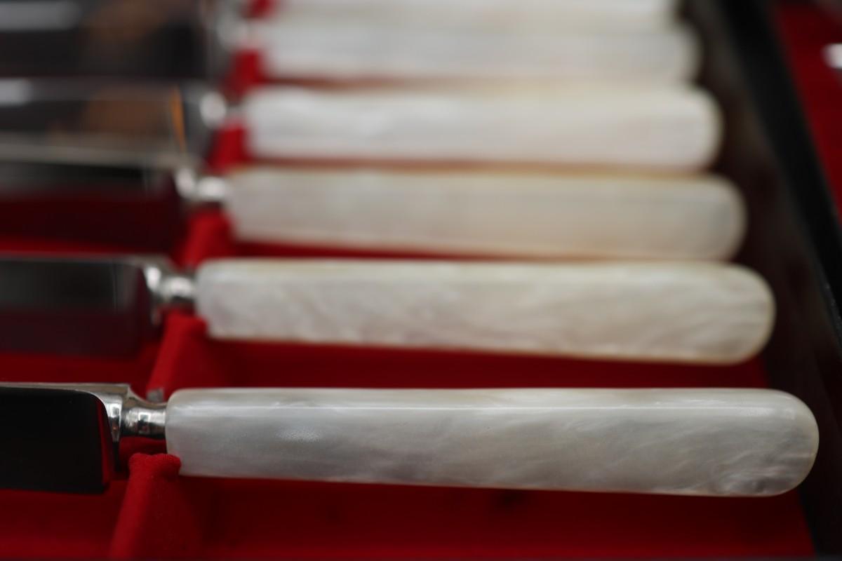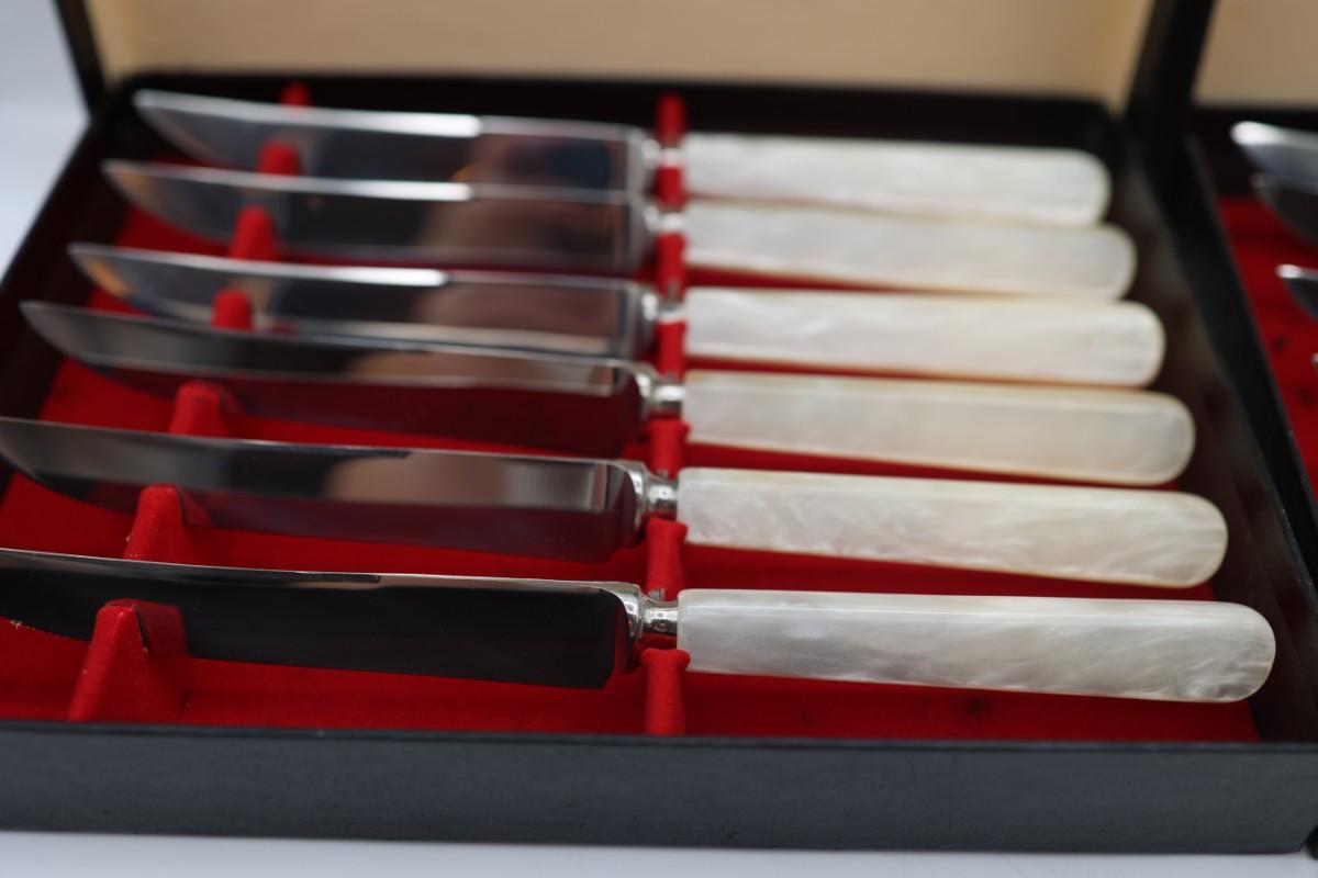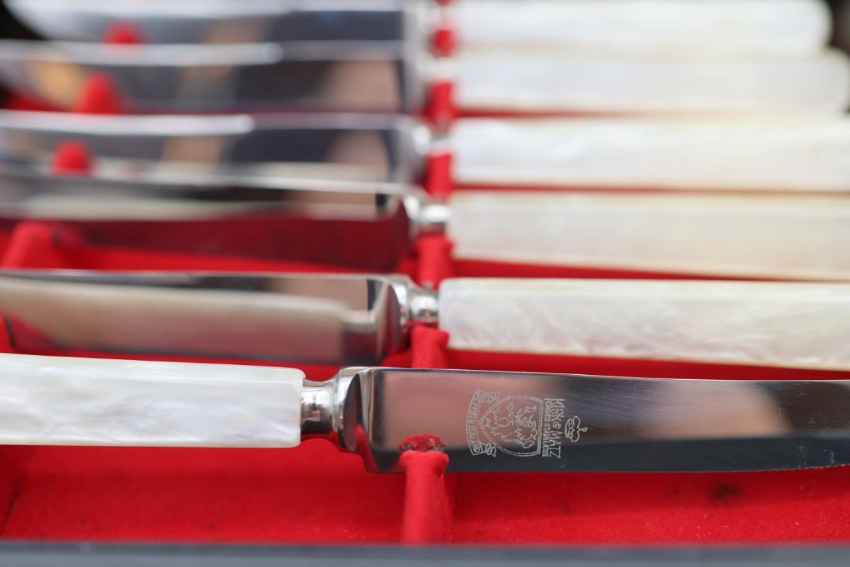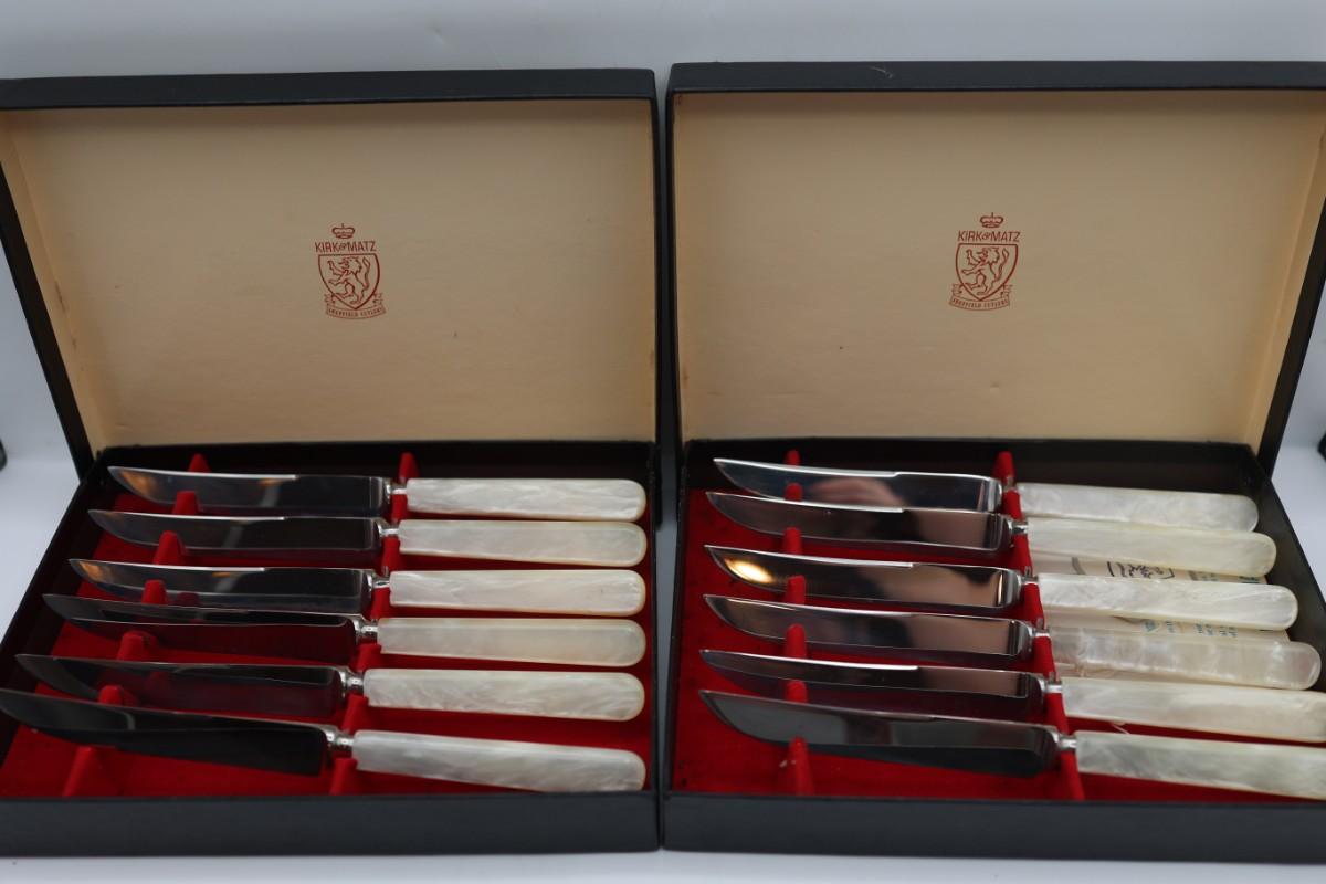 Set of 12 Kirk & Matz Stainless Sheffield Cutlery Steak Knives in original cases.