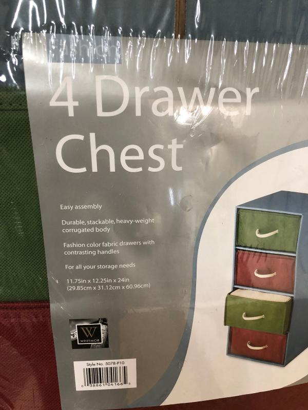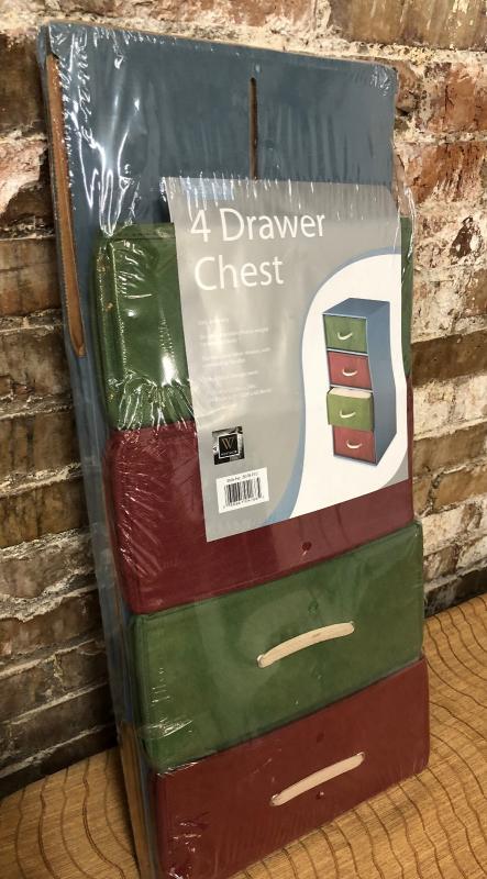 Easy assembly..durable, stackable, heavy-weight corrugated body..Fashion colors on this 4 Drawer Chest...Sealed..New...