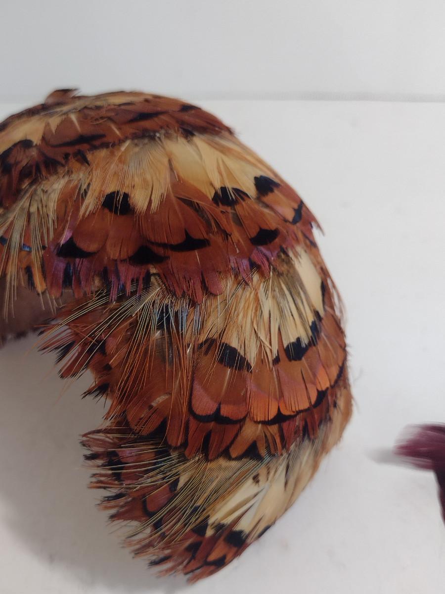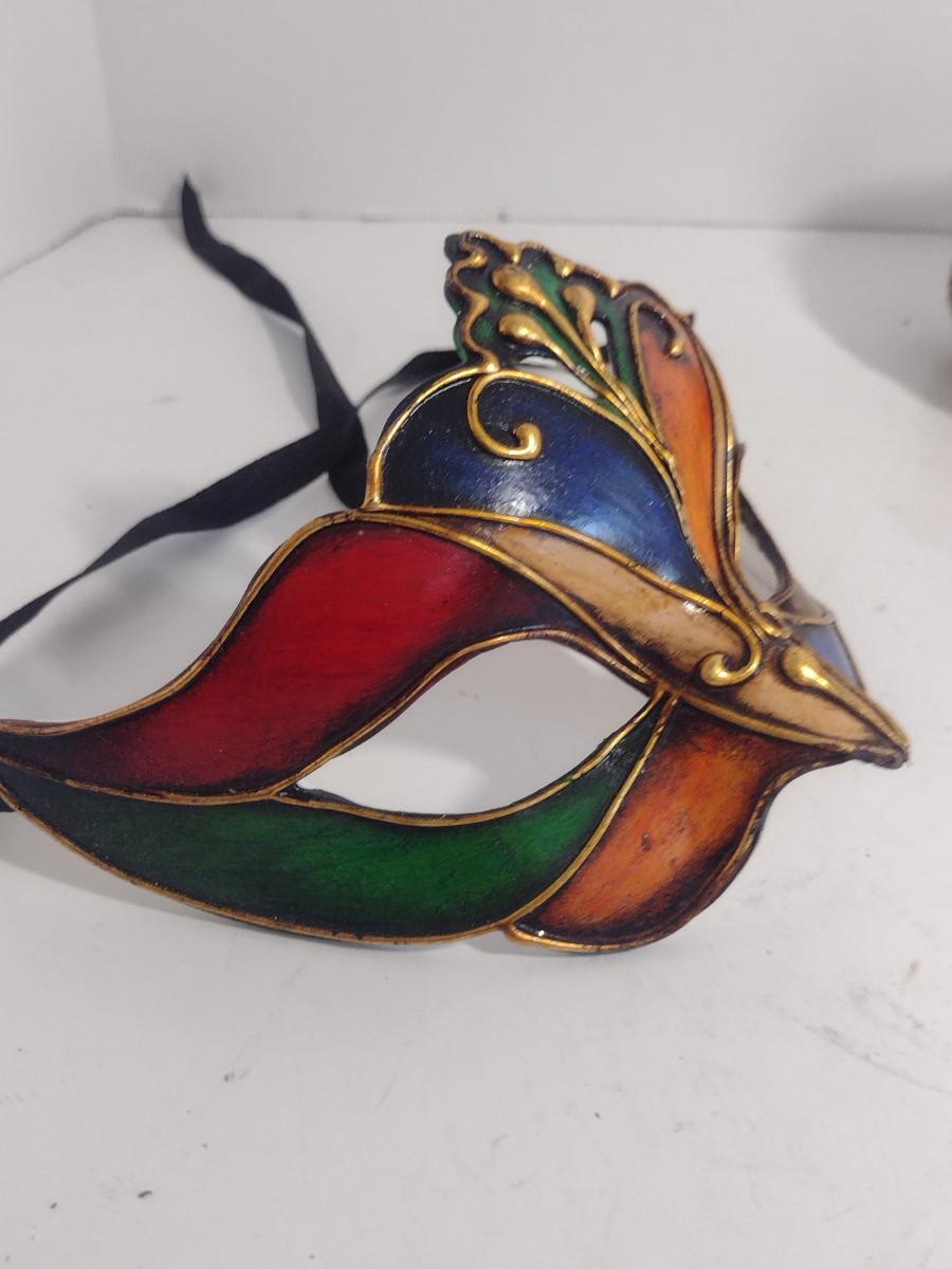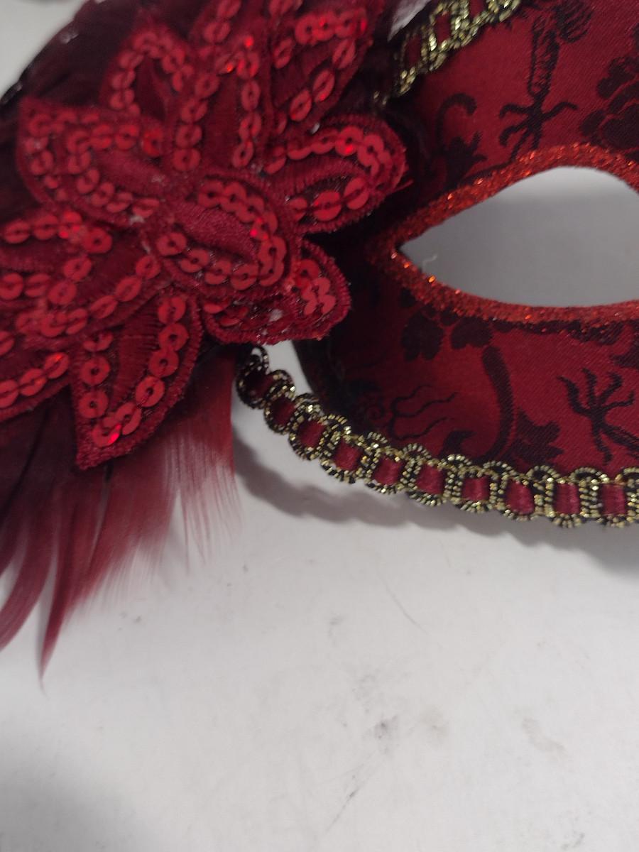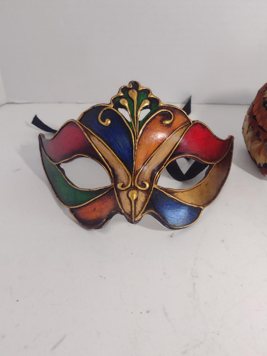 Fashion Accessories- Two Mardi Gras Masks and Vintage Pheasant Feather Hat. Red mask needs feather and edging glued back on.
