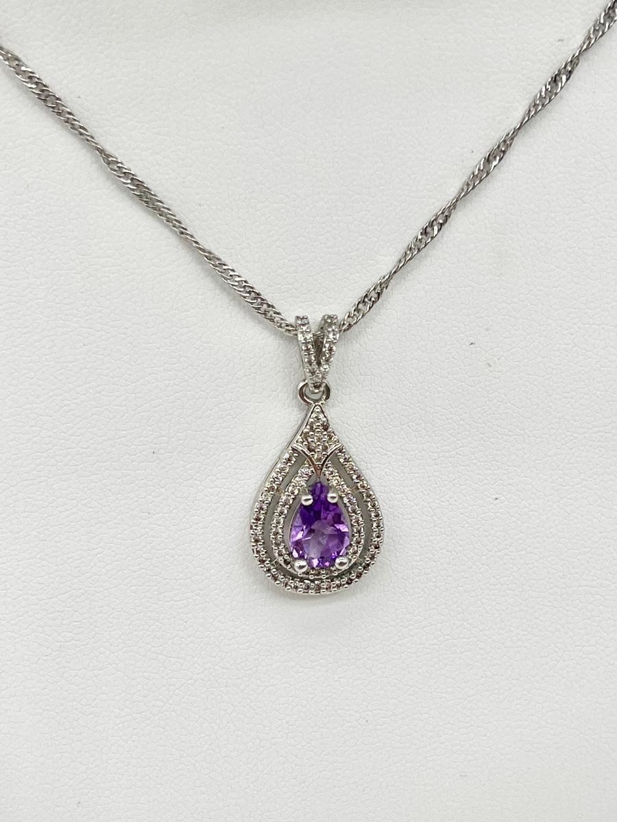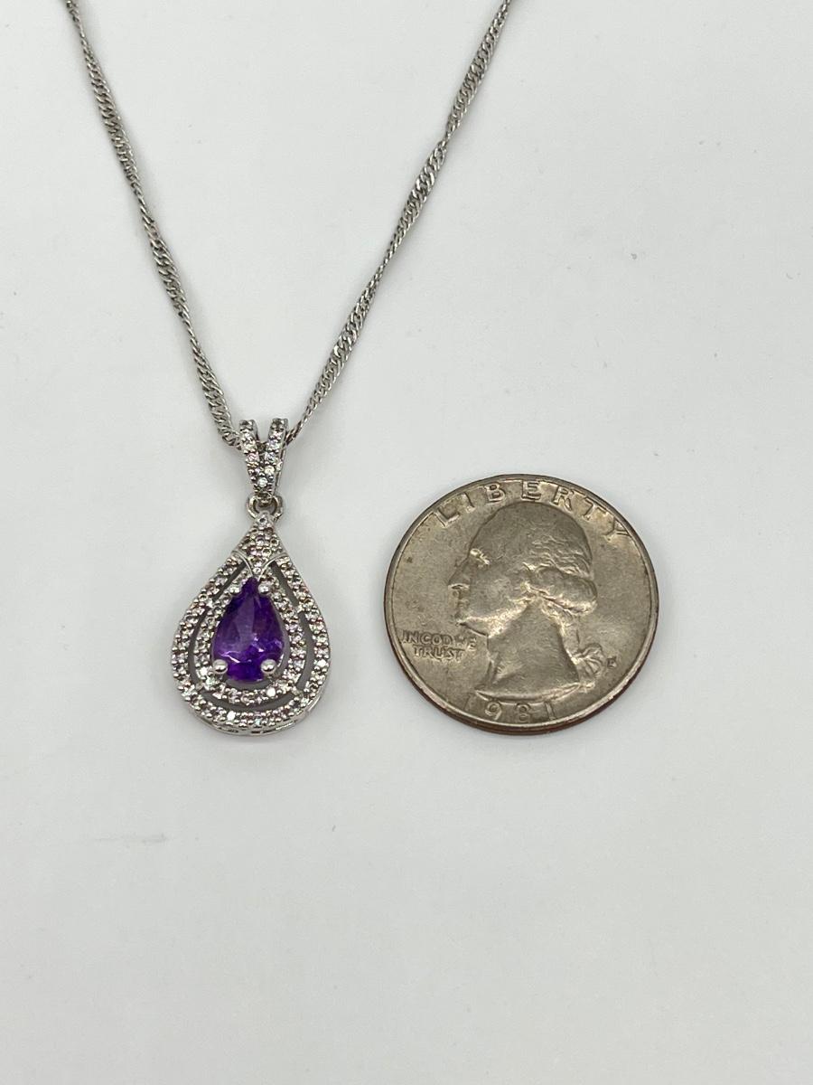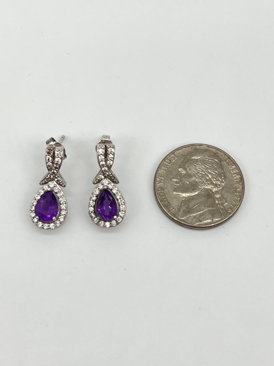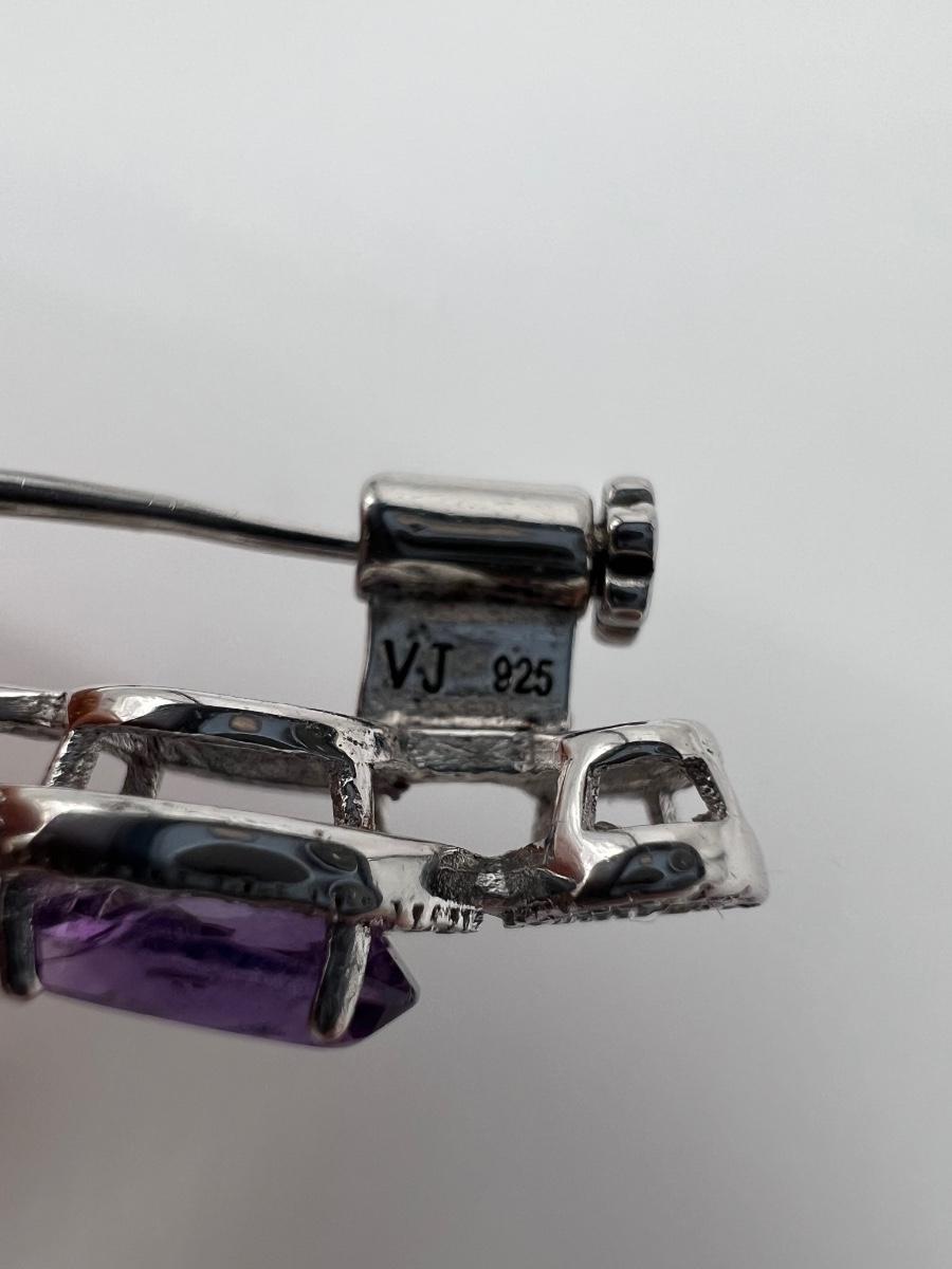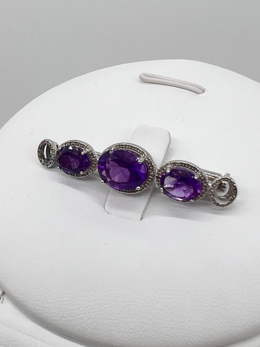 925 / Fashion ~ Amethyst post earring, necklace & brooch set ~ Brooch = 925 ~ Earrings & necklace is fashion ~ 18" necklace with 2" extension ~ Brooch = .5" x 1.75" ~