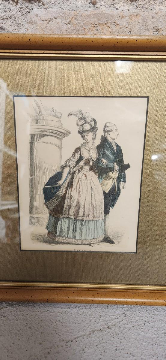 Neat framed hand water.colored fashion book prints