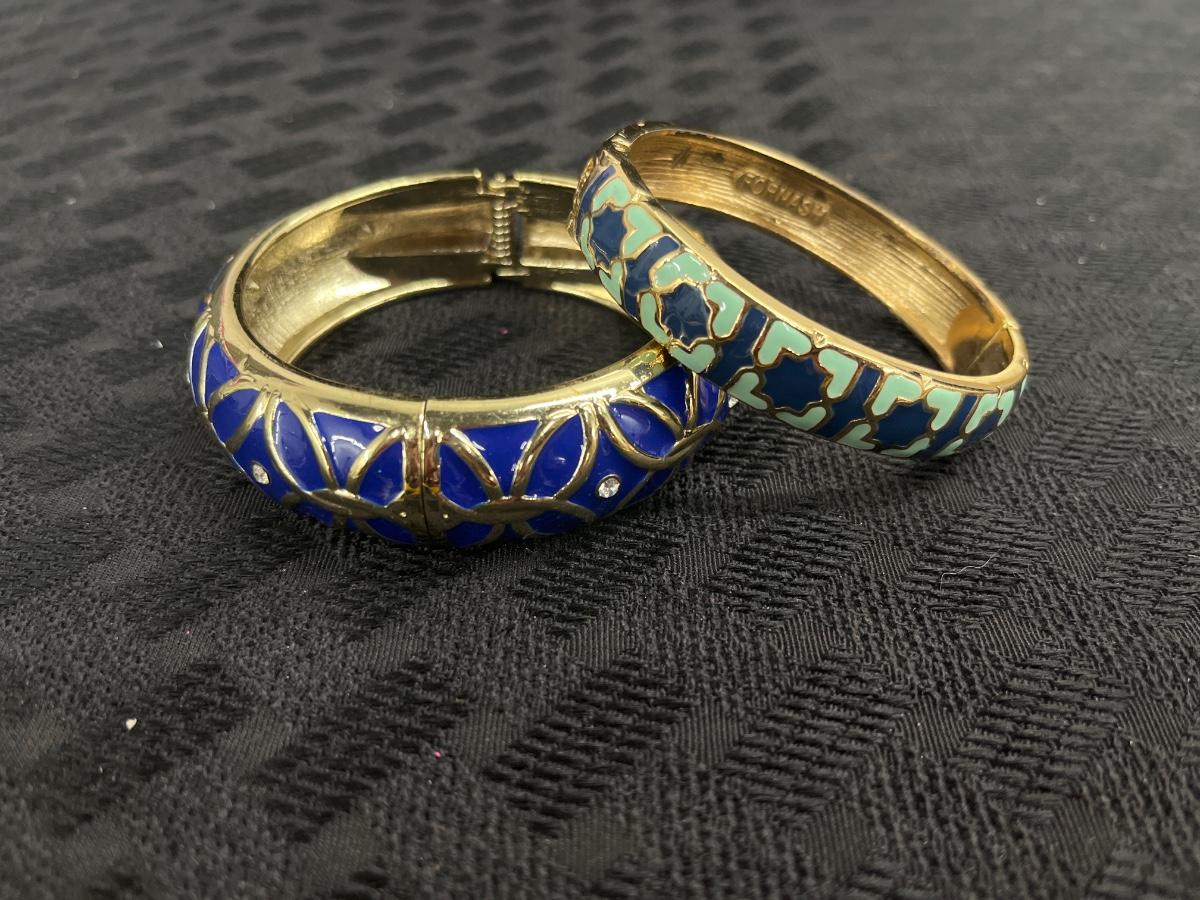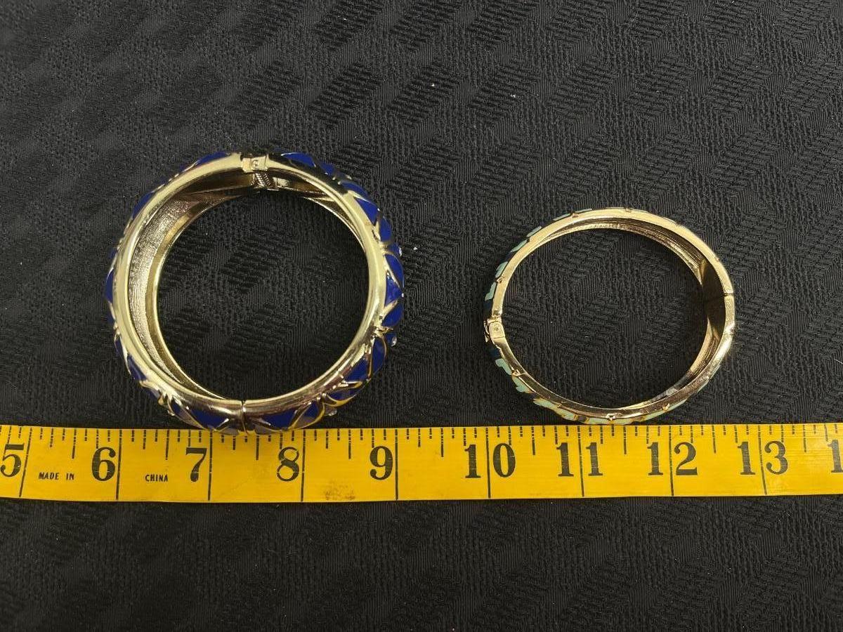 Womens Bracelet Blue Silver Tone Domed Hinged Bangle 7" Costume Fashion Jewelry