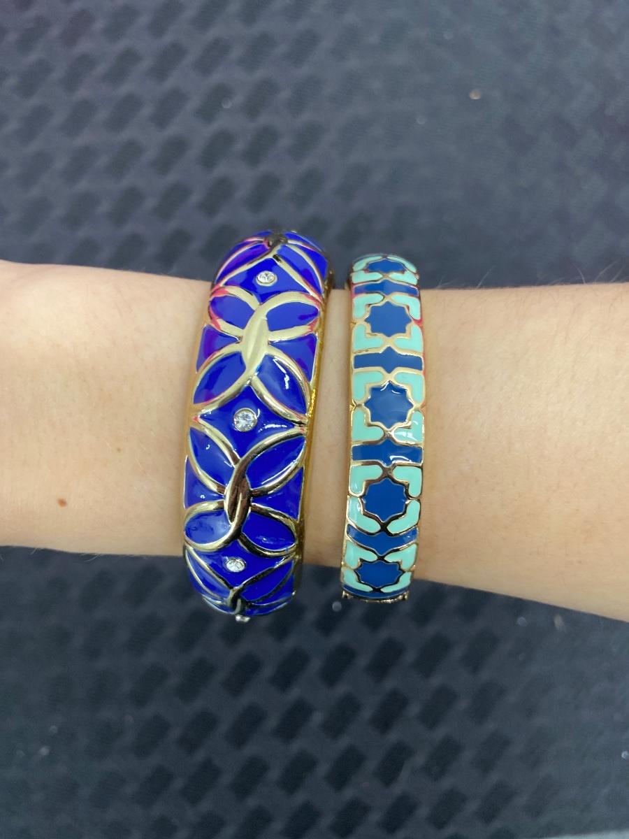 Blue Enamel Bracelet Alhambra Motif Turquoise Gold Hinged