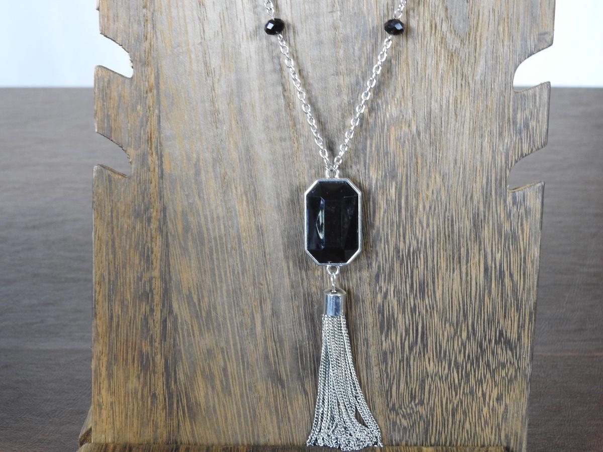Beautiful large black medalian fashion costume jewelry necklace in great used condition
