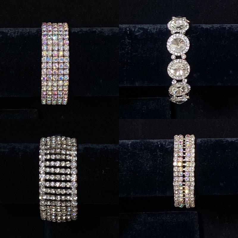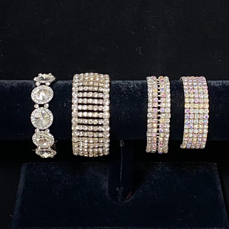 Set of 4 Assorted Crystal Bracelets. 3 are Stretch and the widest one is Adjustable Cuff