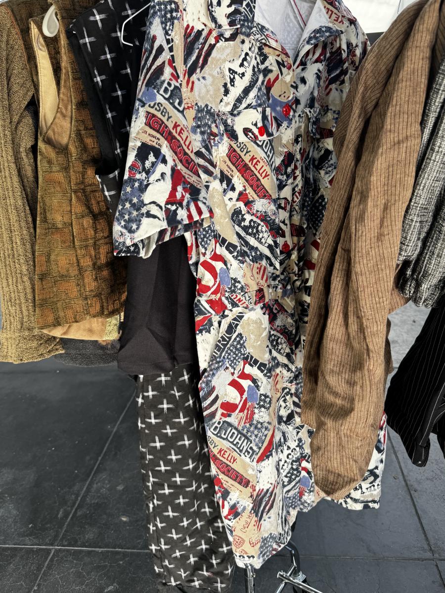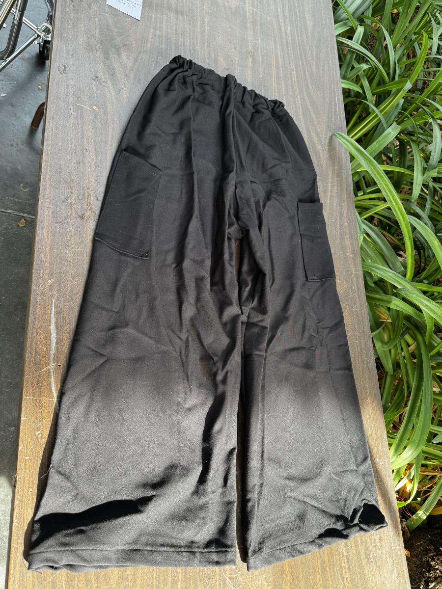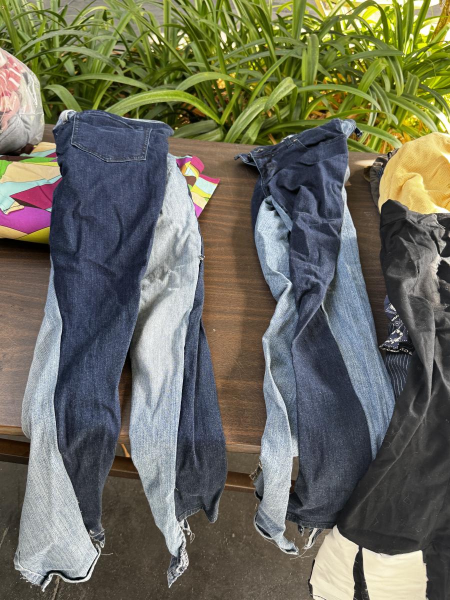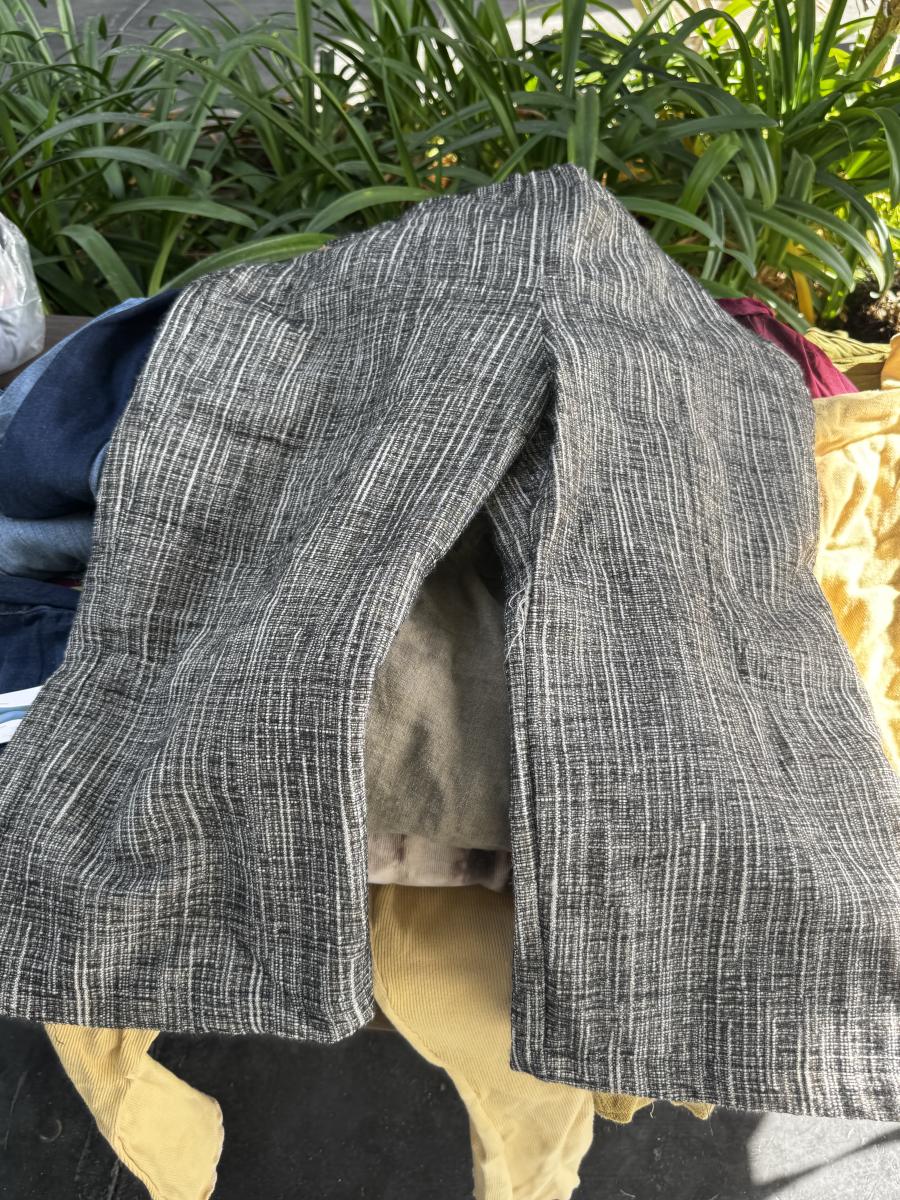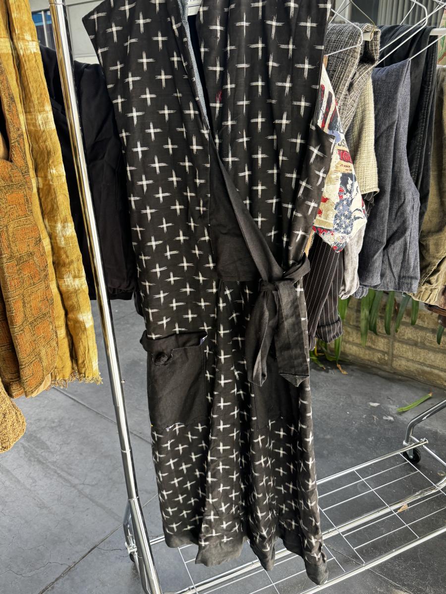 Large lot with many samples from “oversized line” Natural fibers, large sizes with outrageous bell bottoms. All of the items except for brand name inspiration pieces are hand sewn and some are not finished or might have flaws. Great for reseller, fashion students, designer or someone who loves to wear groovy unique clothing.