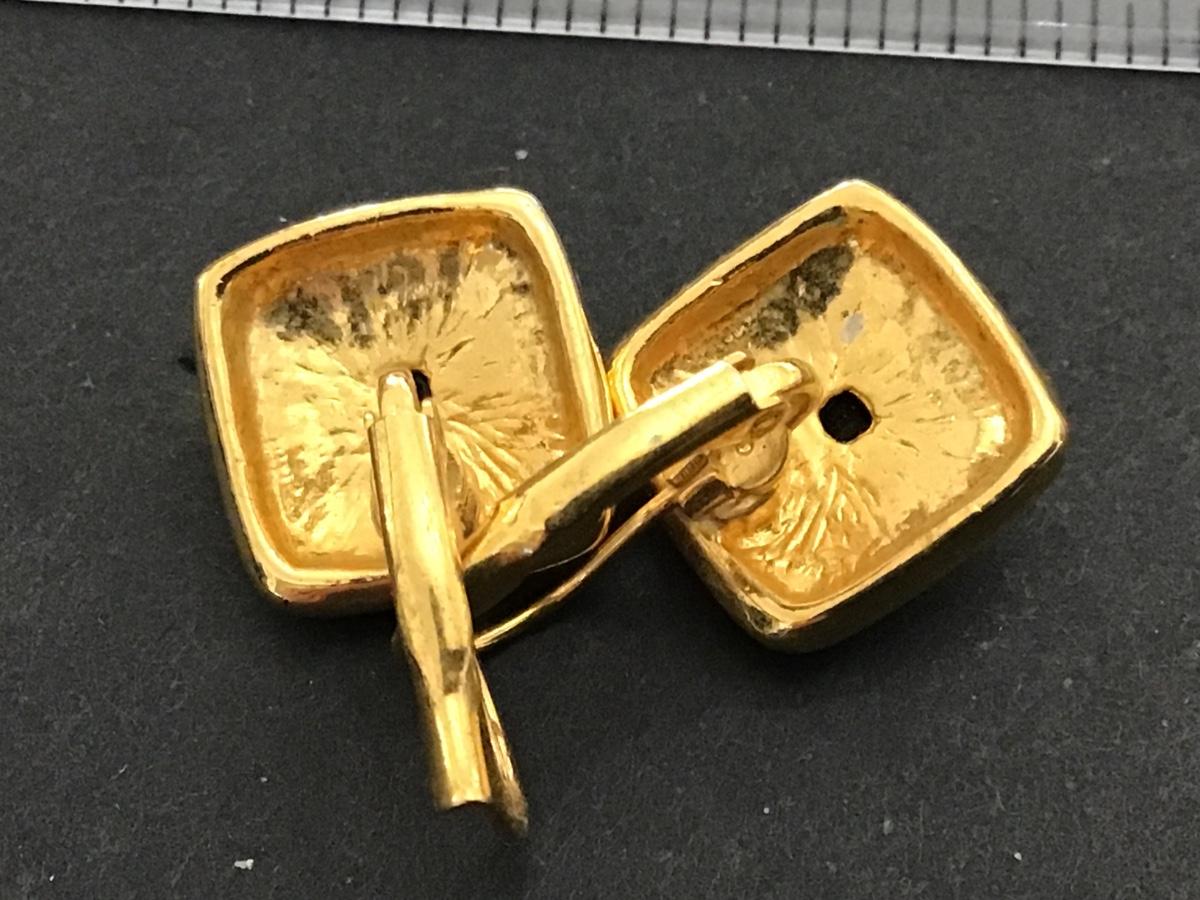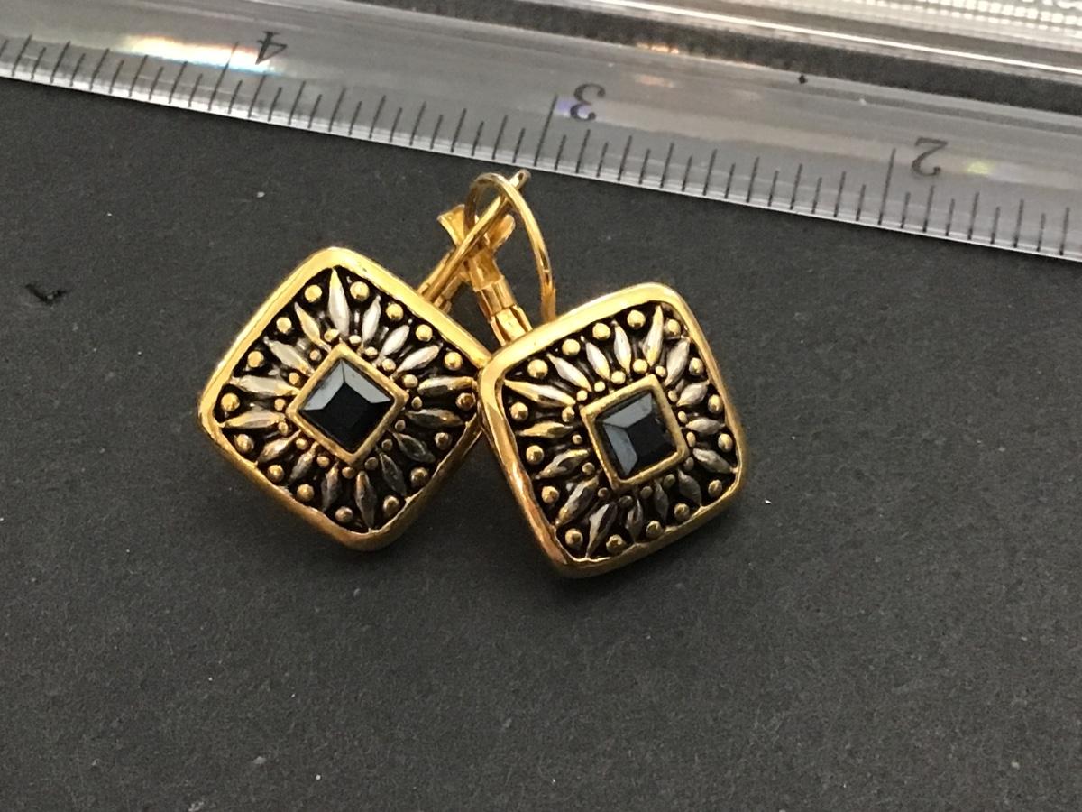 Fashion Earrings Gold Tone Black Stone Center