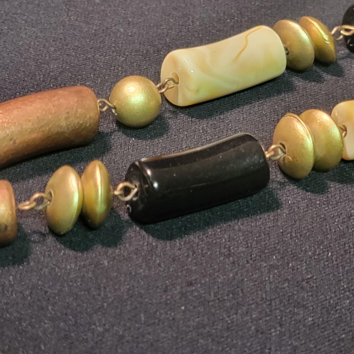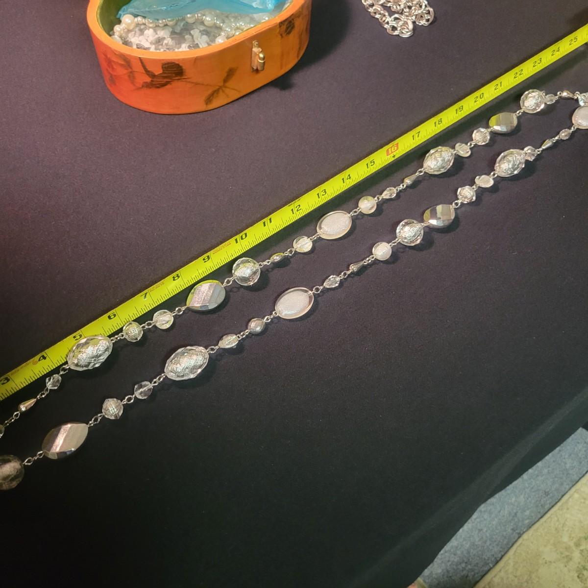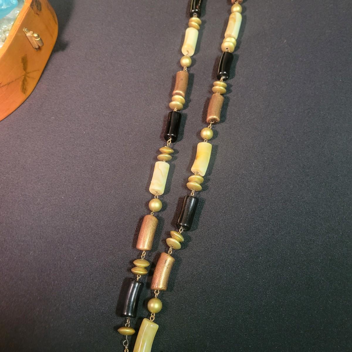 A variety fashion jewelry in a multitude of materials. Necklaces, bracelets and earings (includes post, French wire and clip-on earrings), made of shell, glass and more. See attached pictures for full inventory. Shipping available