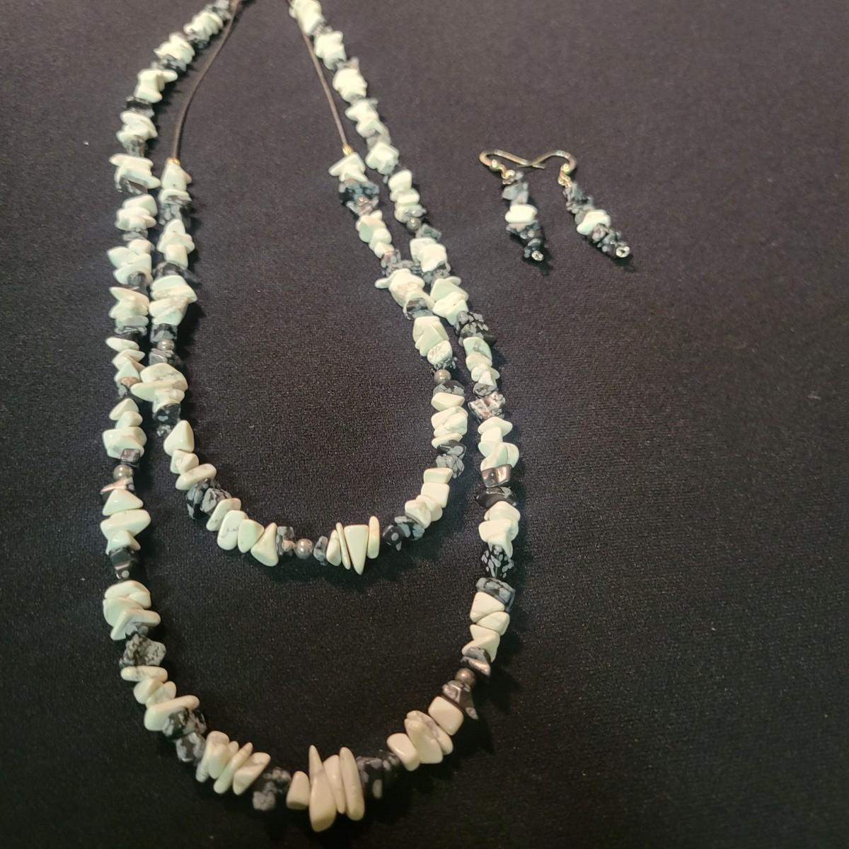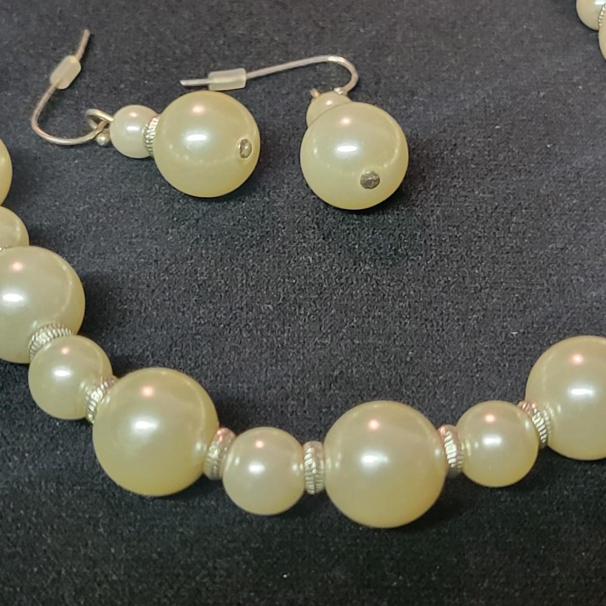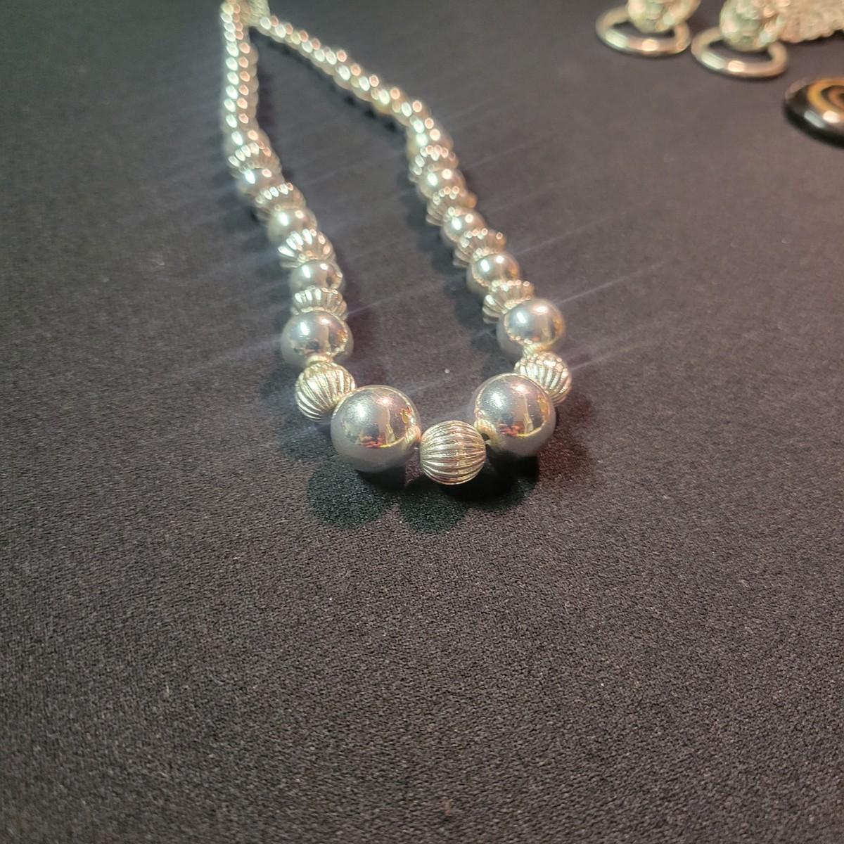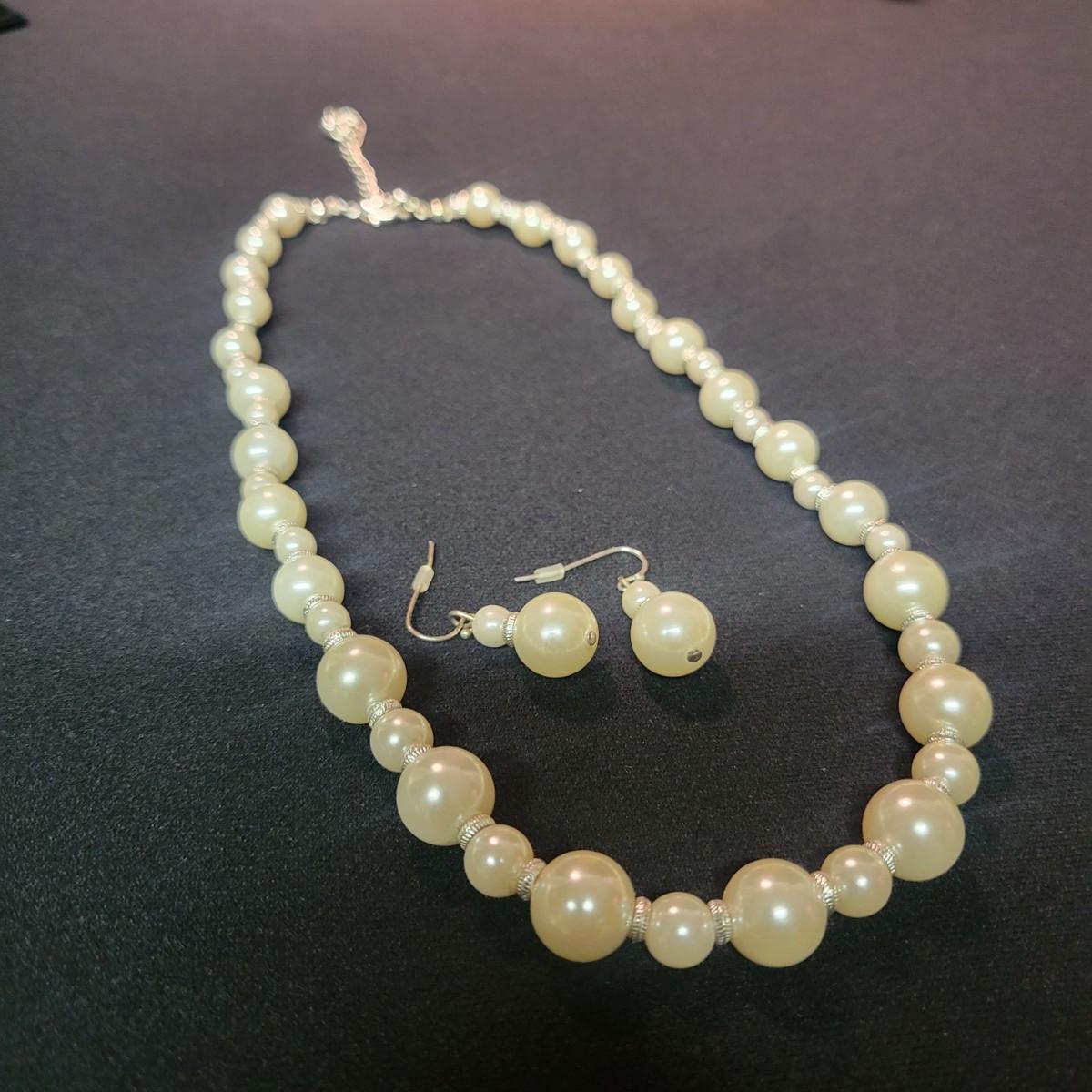 A variety fashion jewelry in a multitude of materials. Necklaces, bracelets and earings (includes post, French wire and clip-on earrings), made of shell, glass and more. See attached pictures for full inventory. Shipping available
