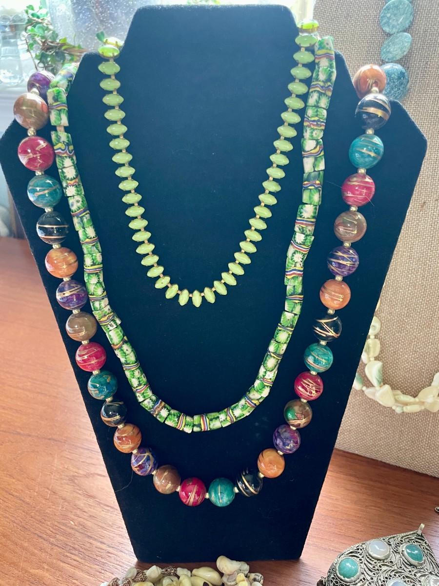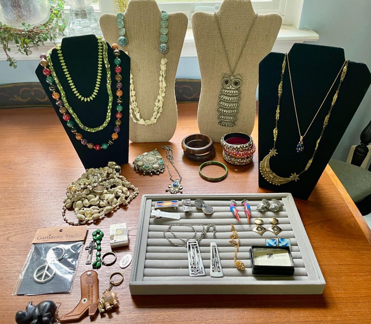 Includes necklaces, bracelets, pendants, cufflinks, clip earrings and keychains.