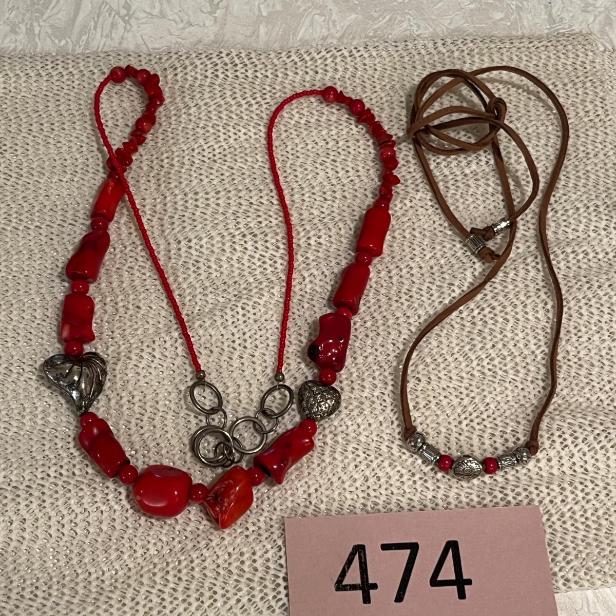 Fashion jewelry necklaces. The one on the left is dyed coral.