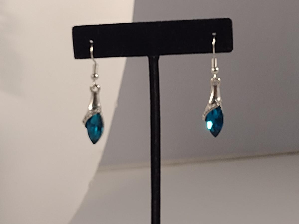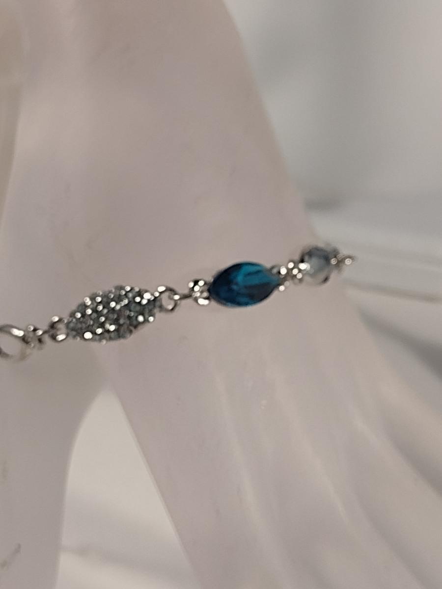 Fashion Jewelry Set with Striking Blue Settings- Necklace, Bracelet, Earrings (#9). Bracelet approx 9". Necklace approx 11".