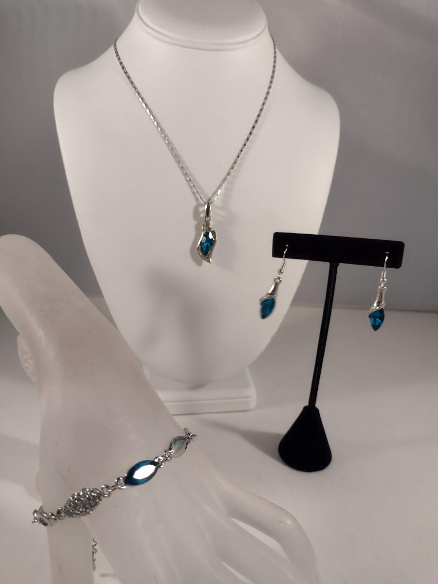 Fashion Jewelry Set with Striking Blue Settings- Necklace, Bracelet, Earrings (#9)