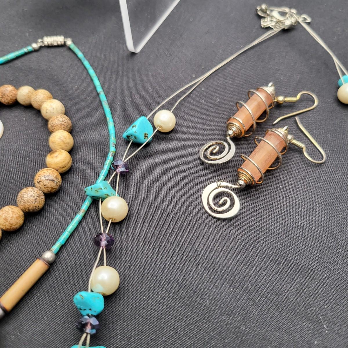 Natures stones: 5 Necklaces, 2 bracelets, 2pr earrings and 1 ring.