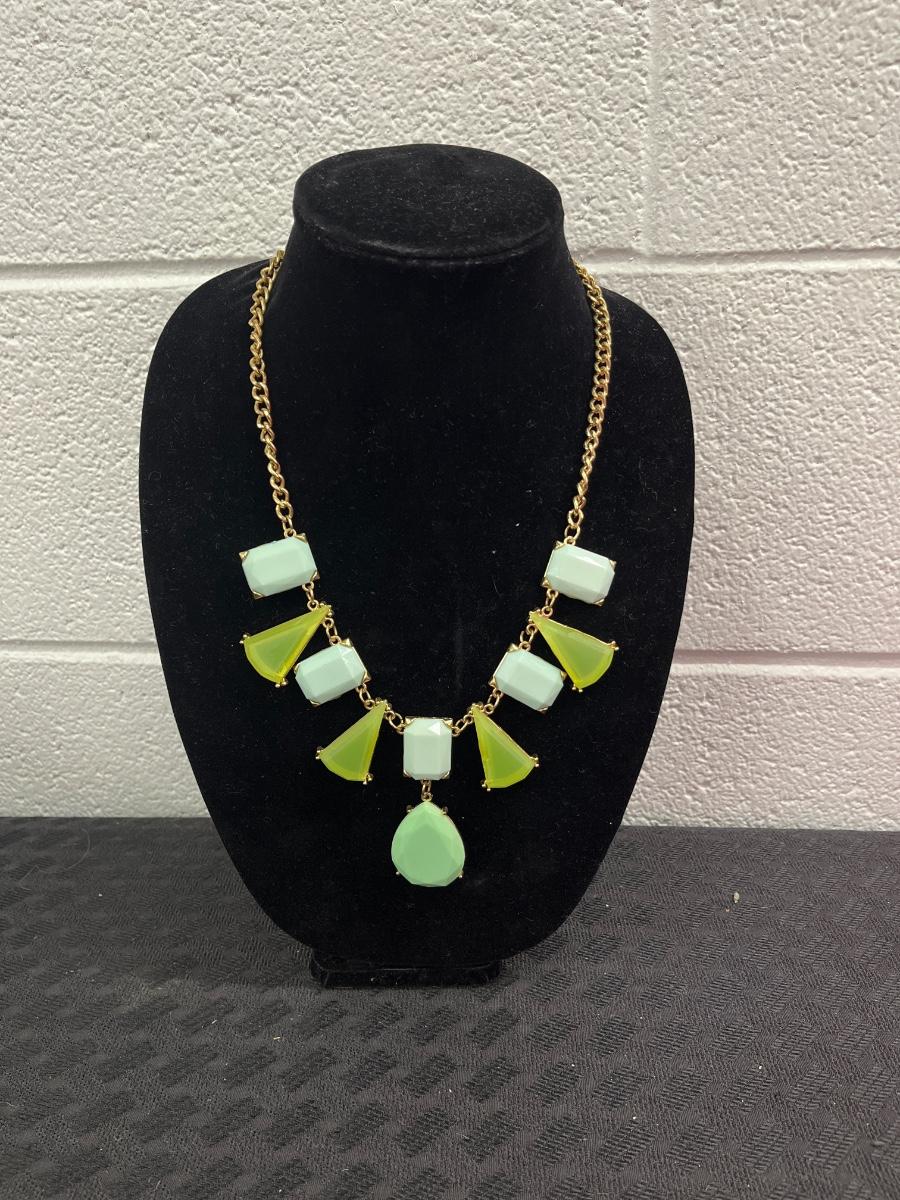 Beautiful gold chain necklace with large green stones