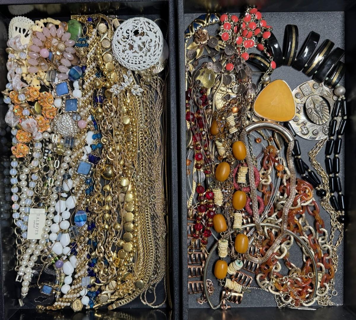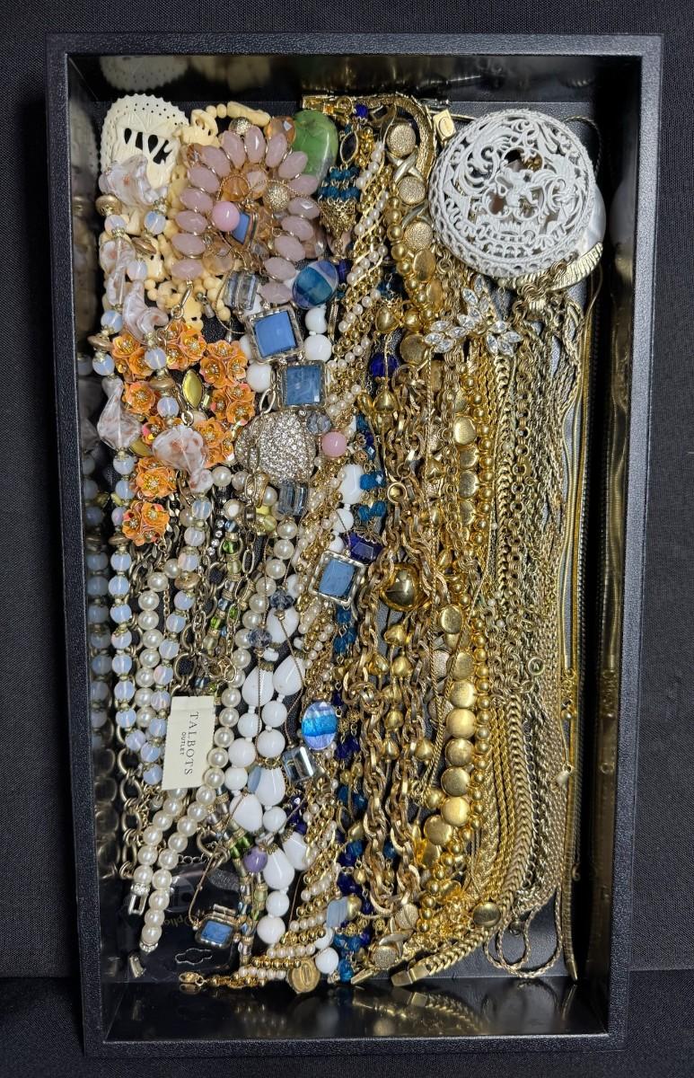 Includes gold tone, beads, chains, chokers, and more. Total of 40+ pieces. Does not include display trays. [JP]