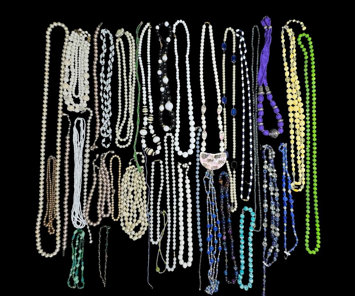 Includes beads, pearls, faux pearls, and more. Total of 35+ pieces. [BK]