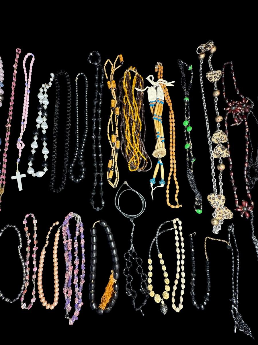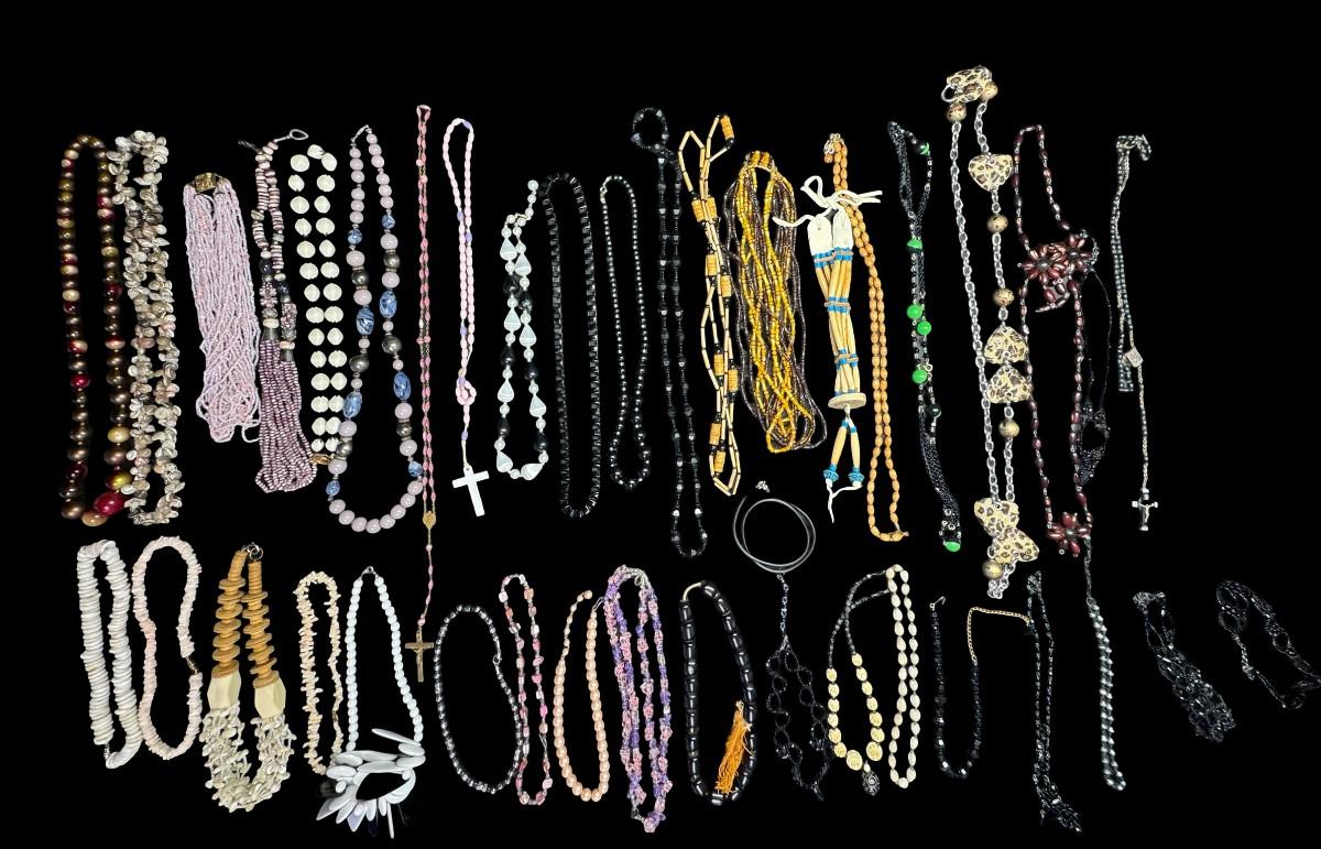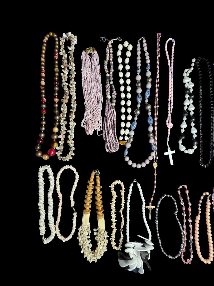 Includes beads, pearls, faux pearls, shells, wood, and more. Total of 35+ pieces. [BK]
