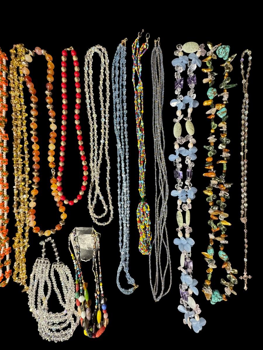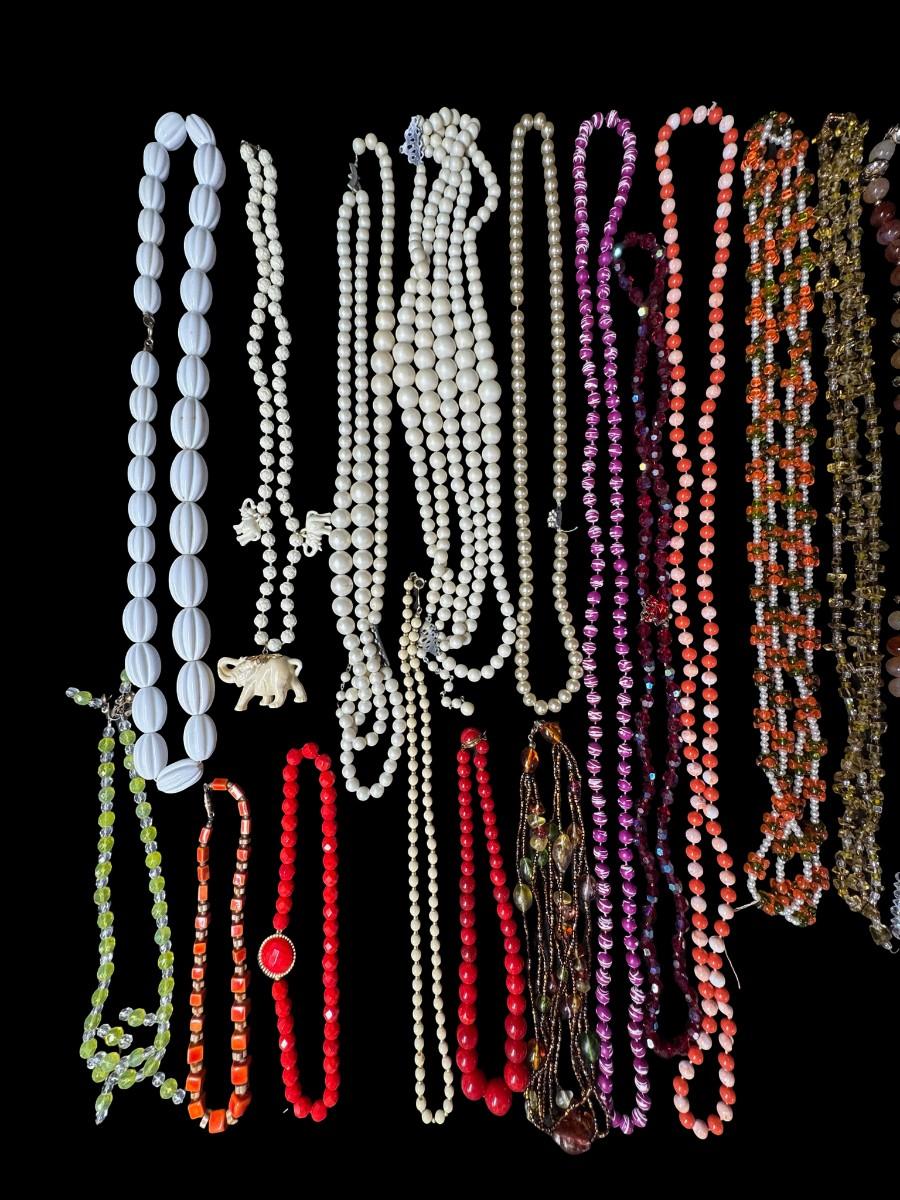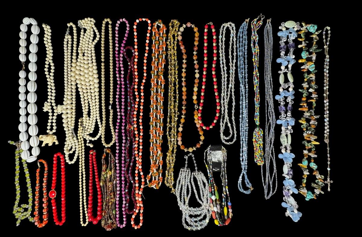 Includes pearls, faux pearls, beads, crystals, and more. Total of 25+ pieces. [BK]