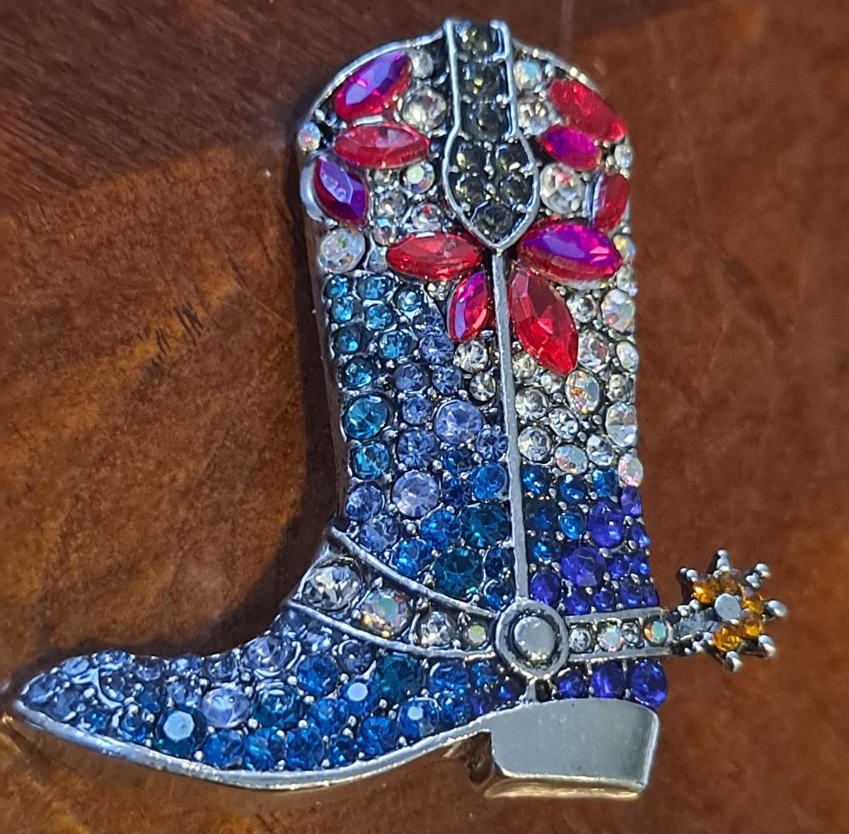 Rhinestone boot pin/brooch