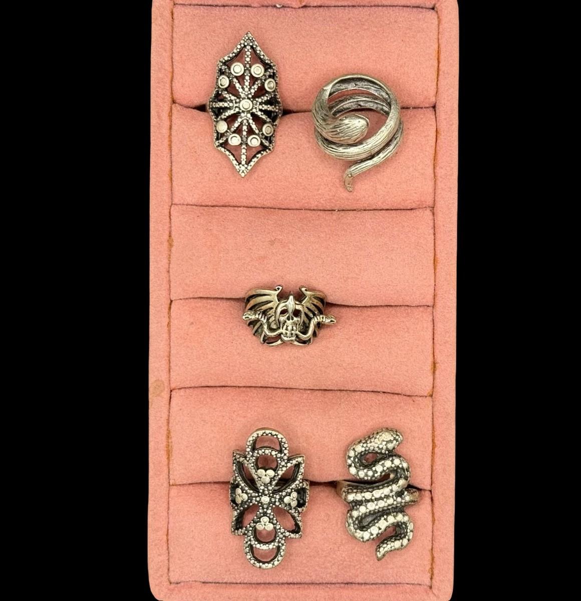 Includes five silver tone rings. Three are adjustable. [BK]