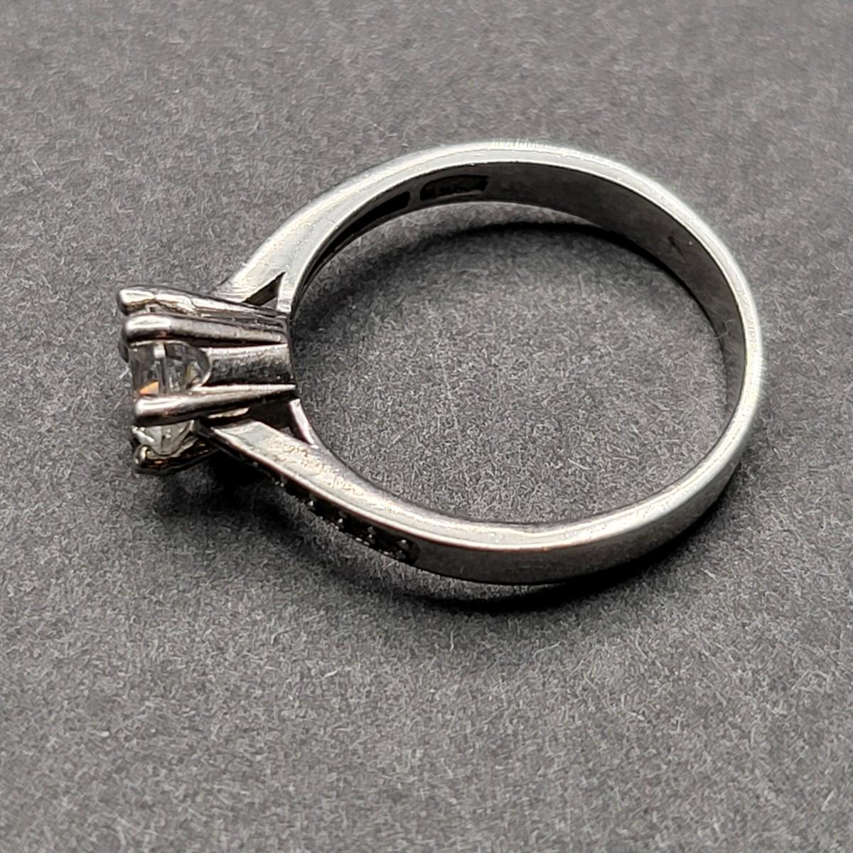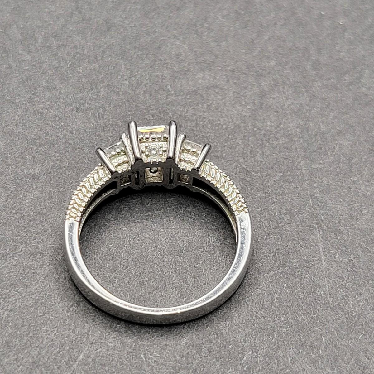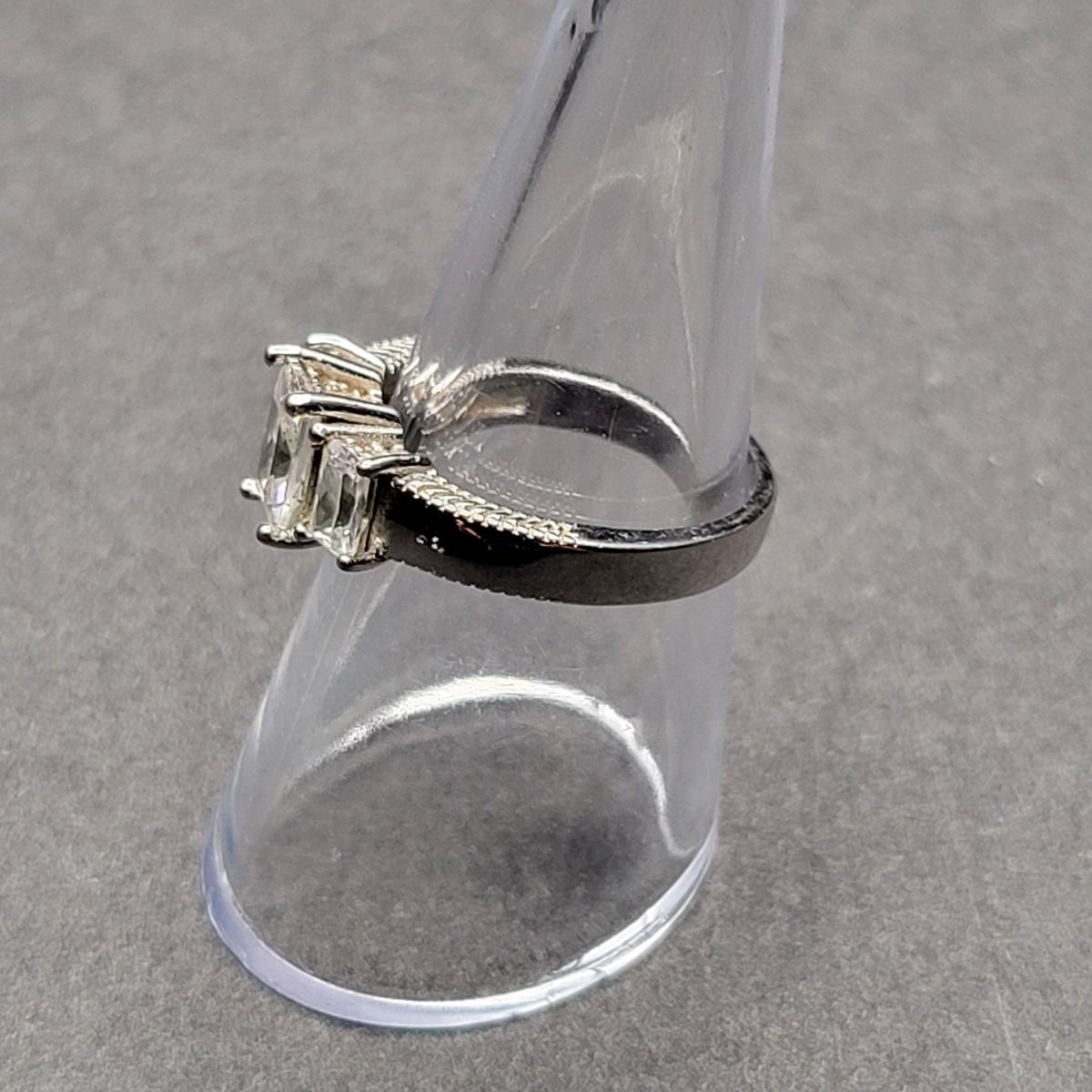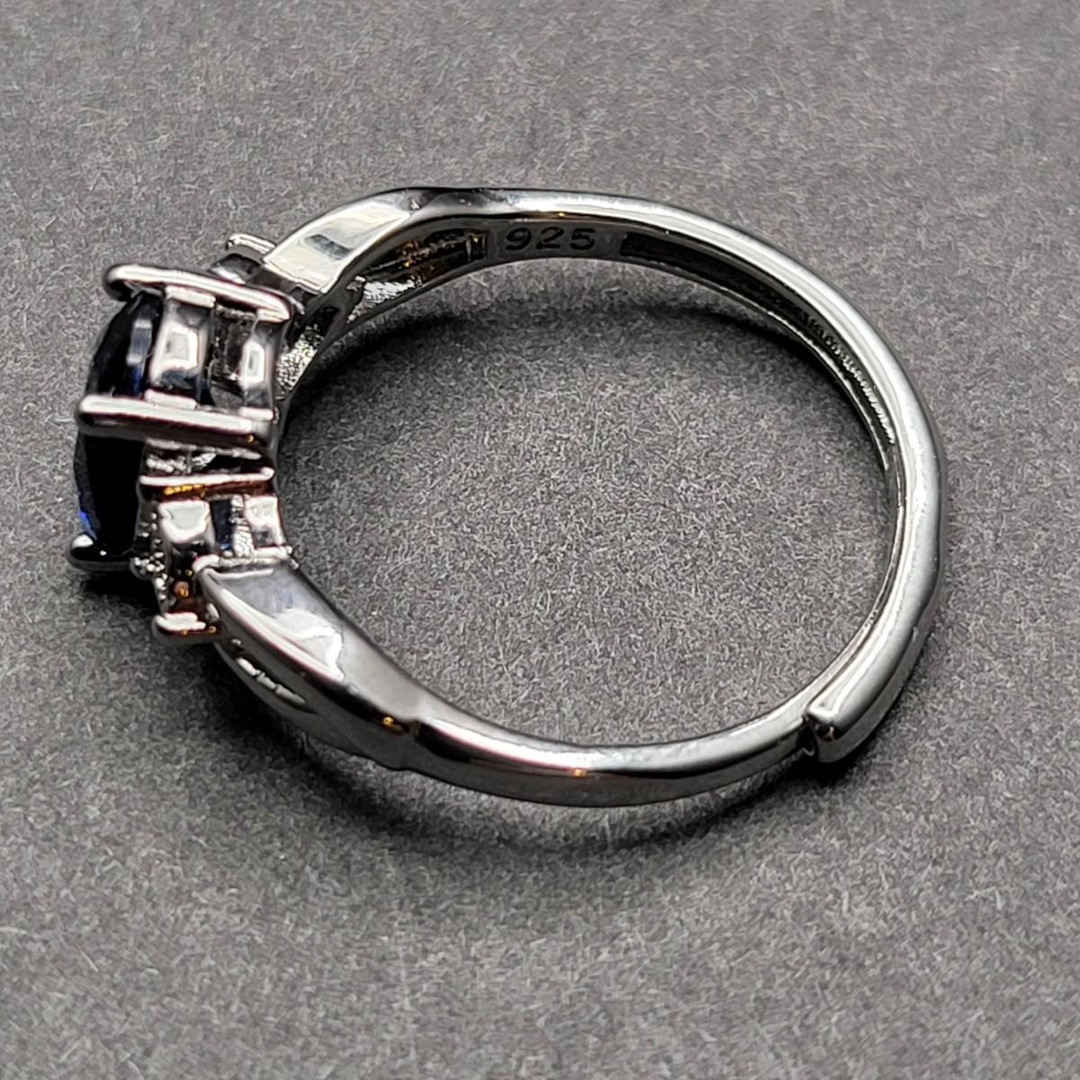 Blue ring size 8.5, clear 3-stone size 7.5, solitaire clear stone size 5.5.