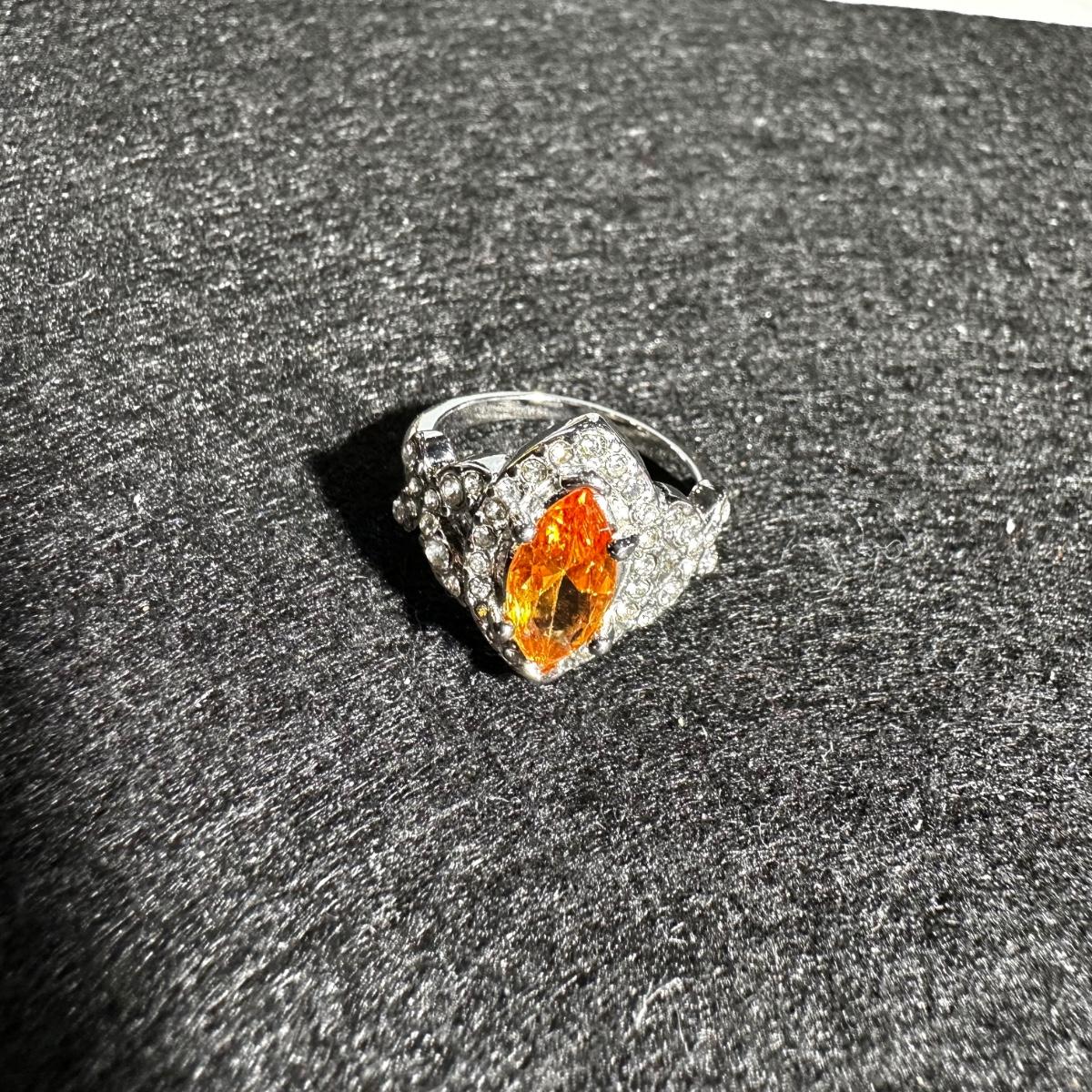 Fashion silver tone Amber gem like ring