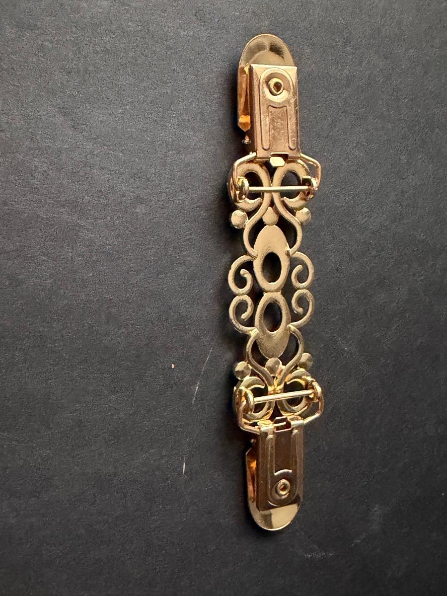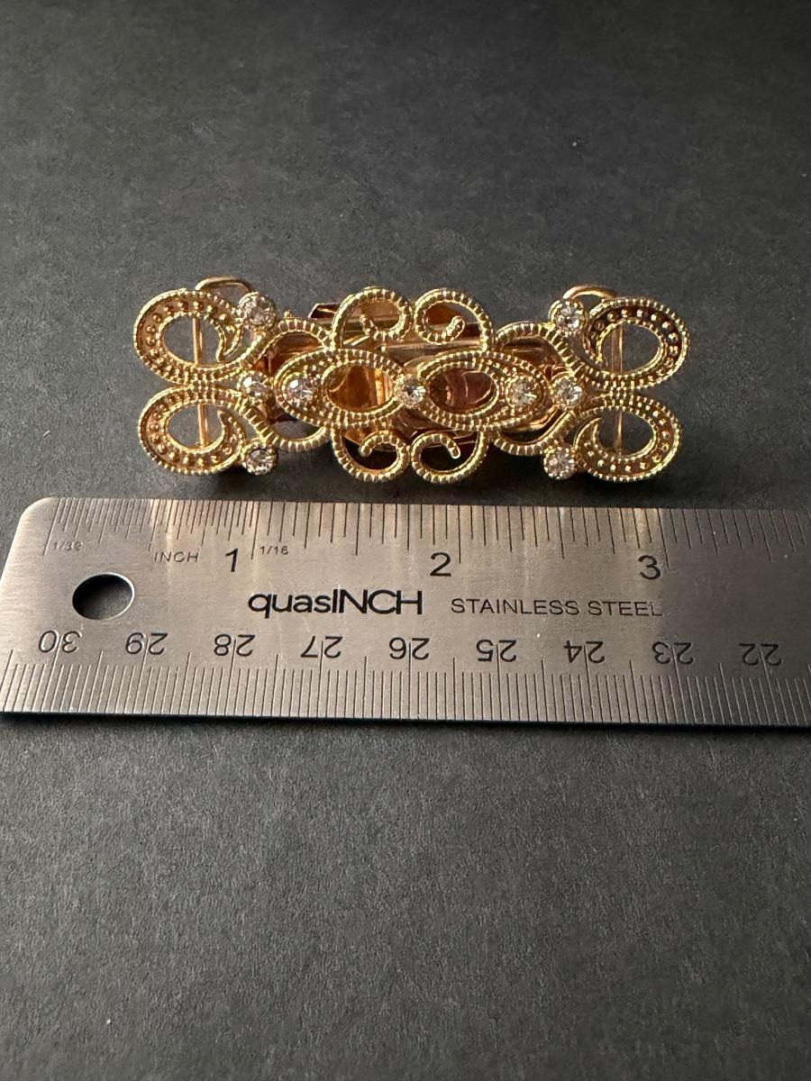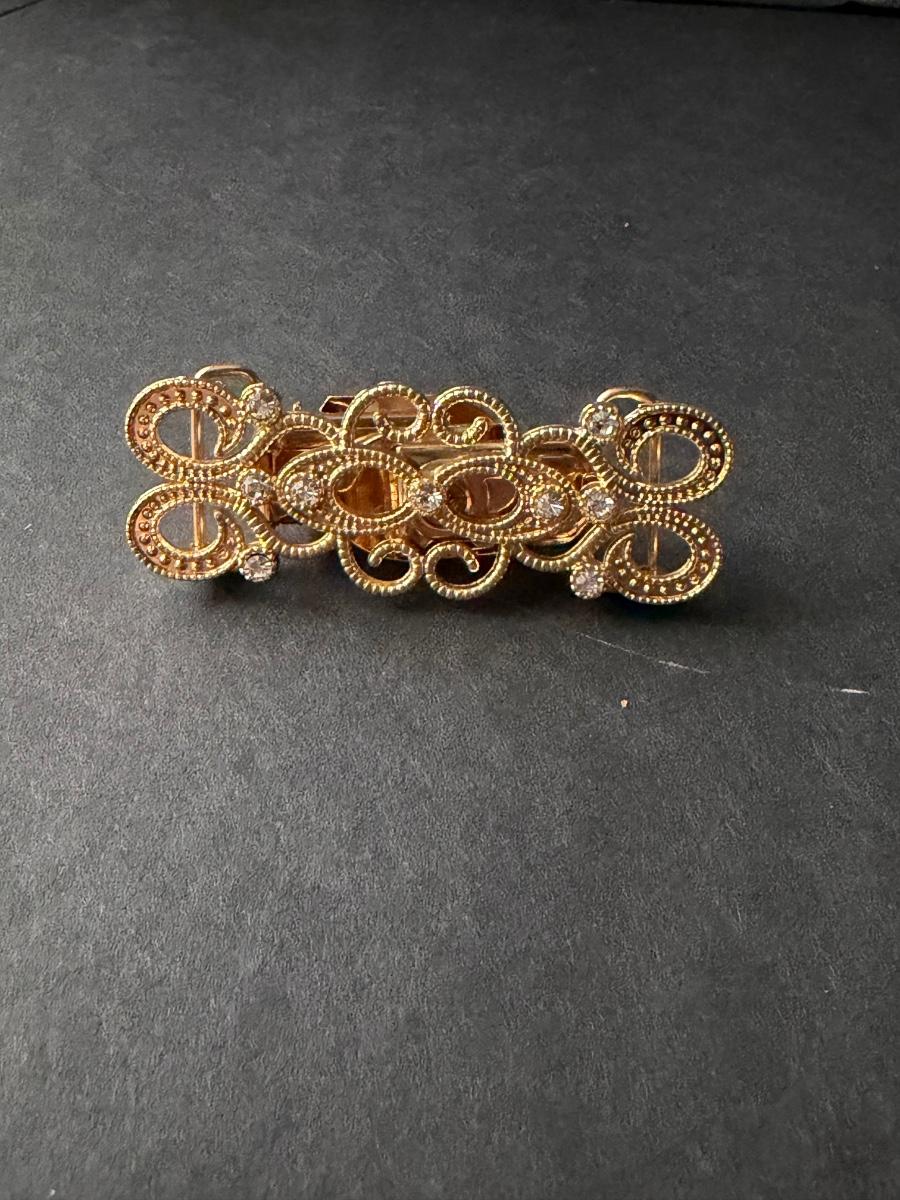 Fashion Sweden gold-tone metal swirly design rhinestone sweater or dress clip.