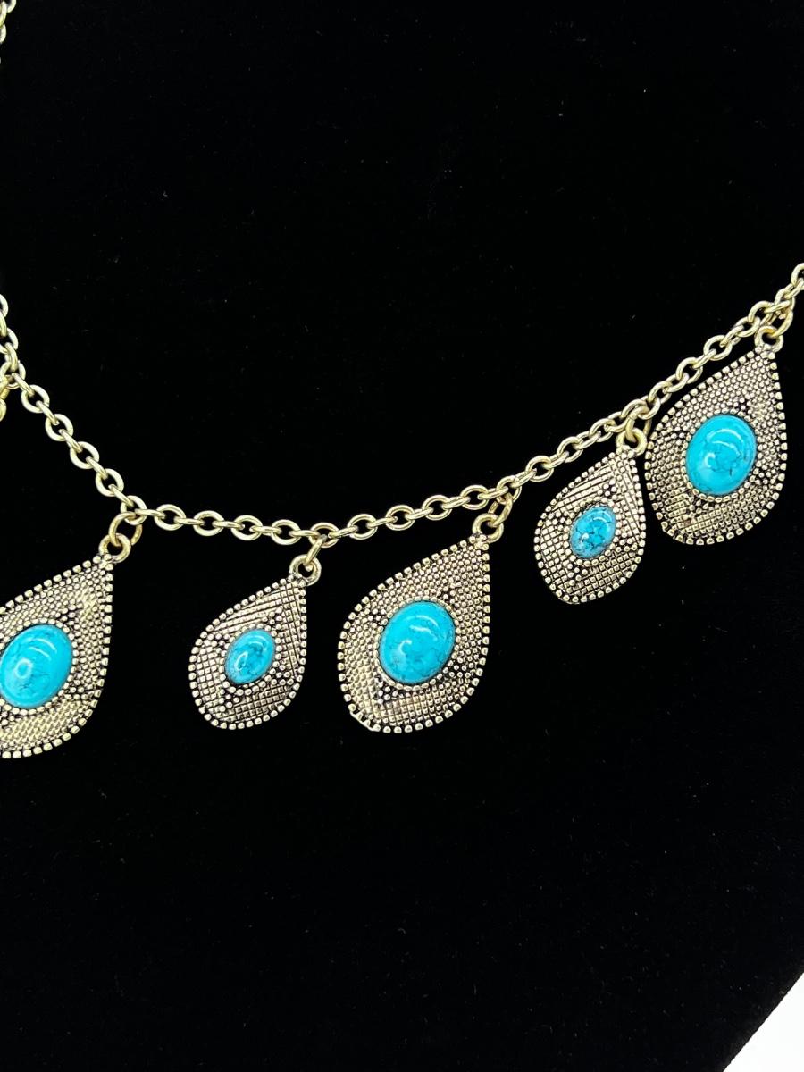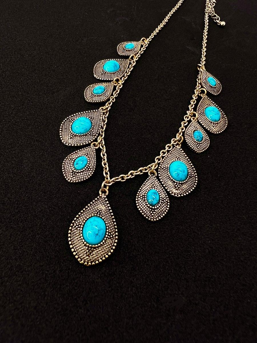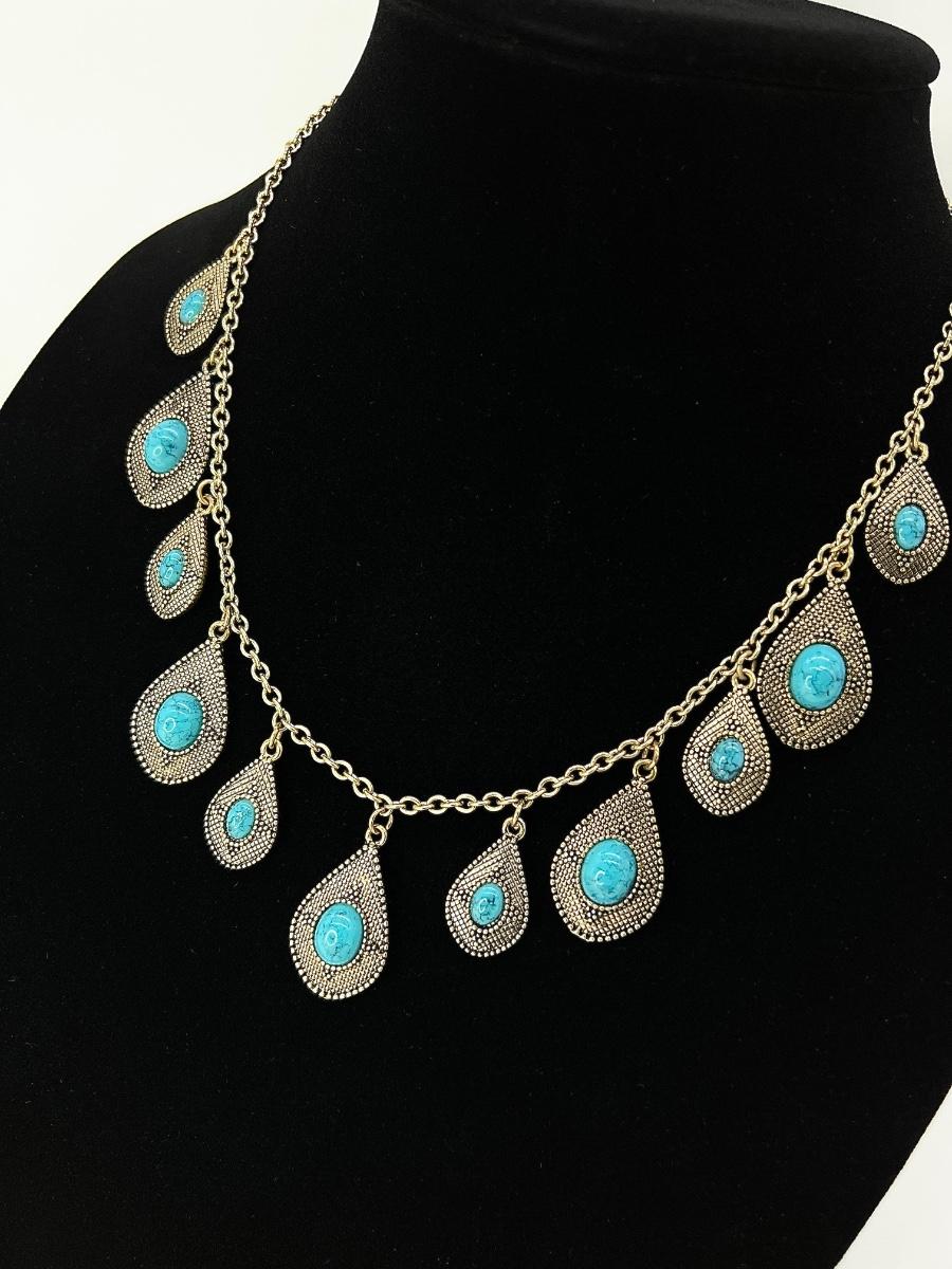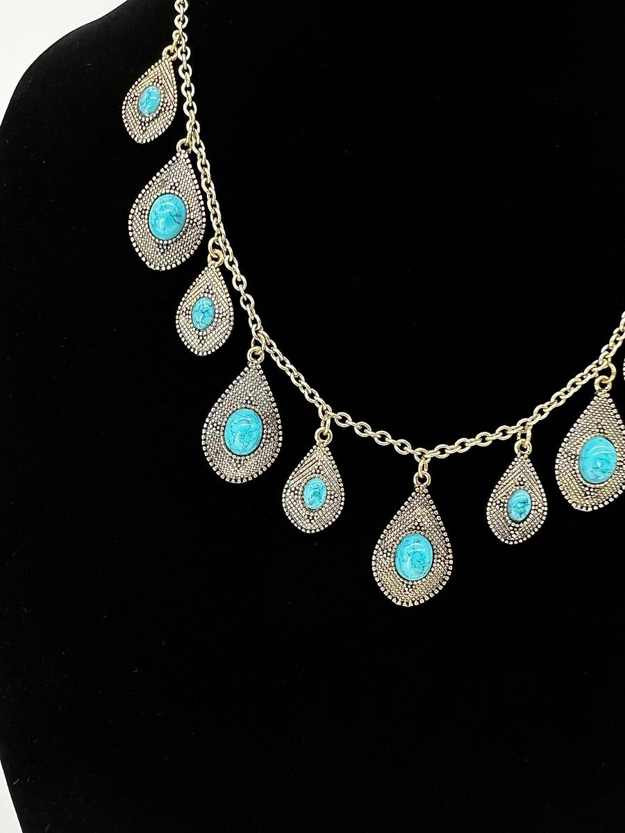 FASHION ~ Turquoise & Silver Tone 18" Necklace (EK)