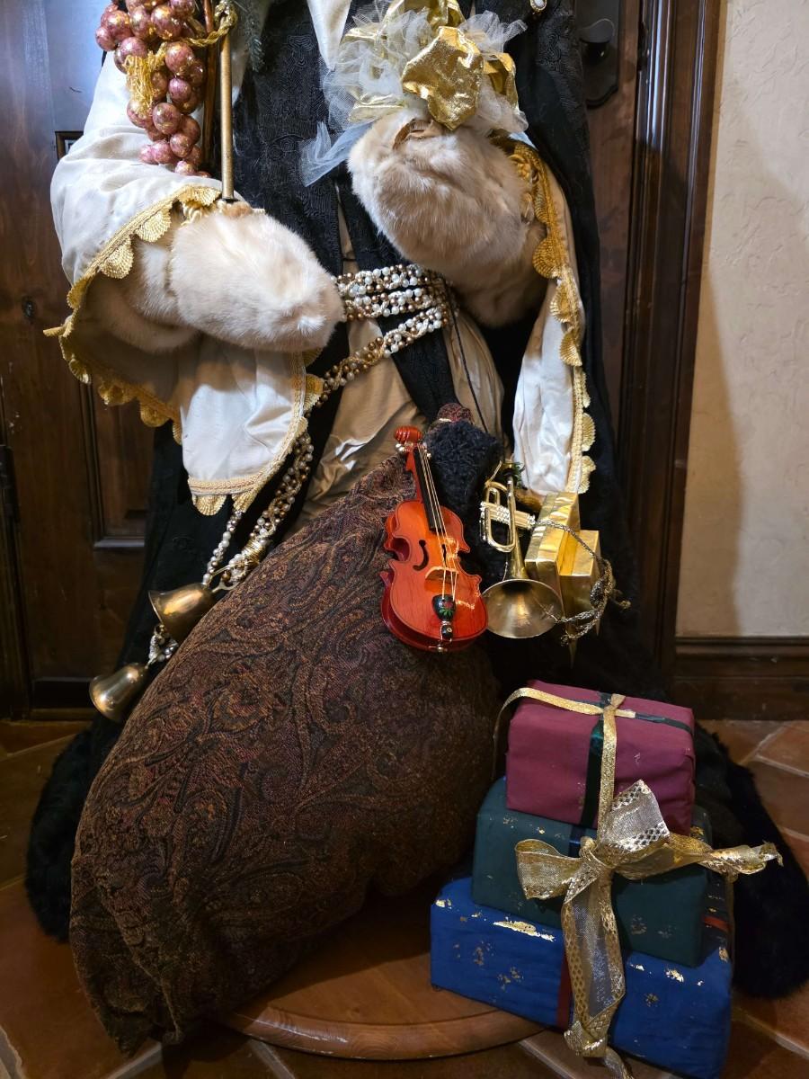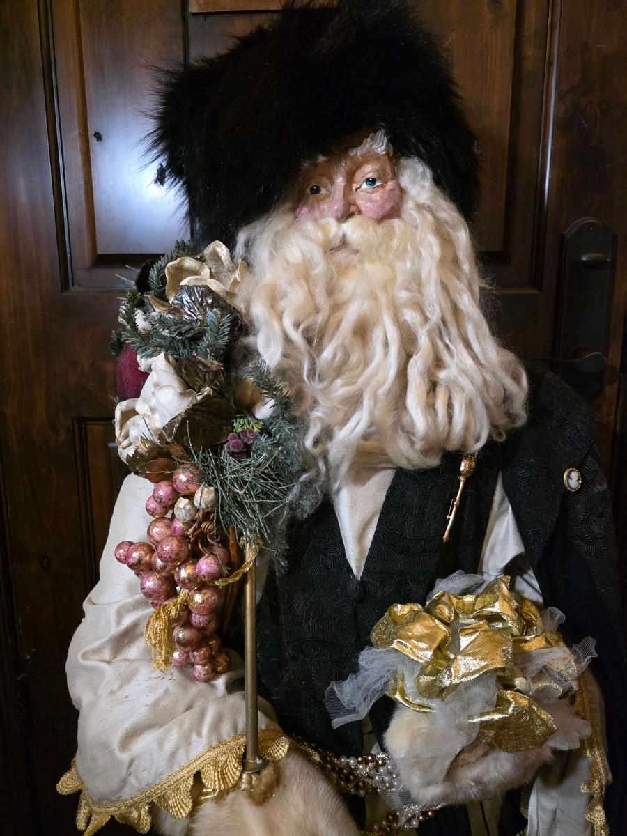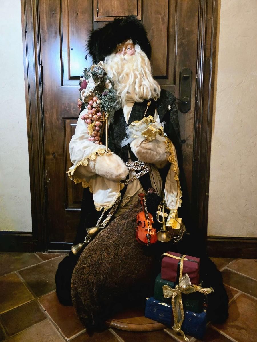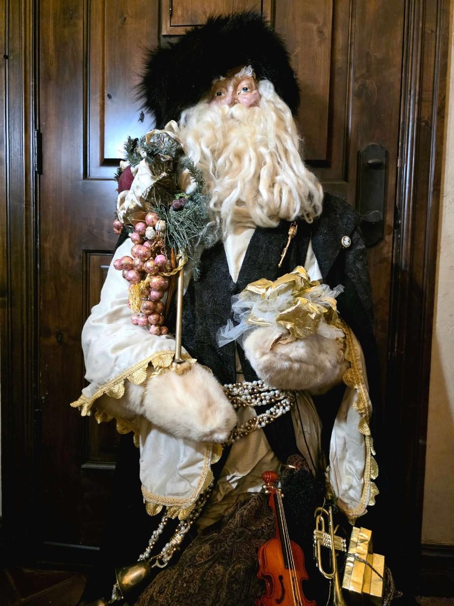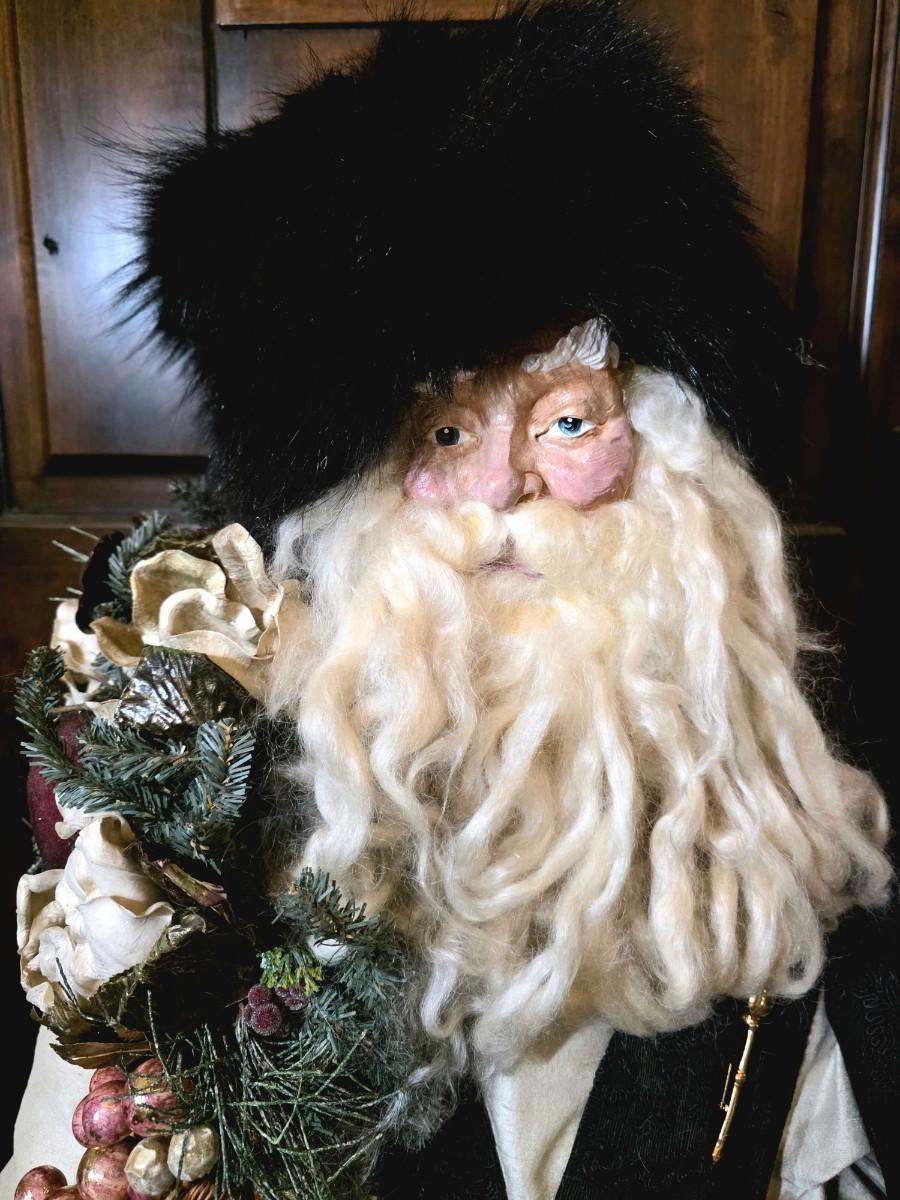 Handsome Father Christmas stands approximately 4"5" tall beautifully robed with a bag full of toys.