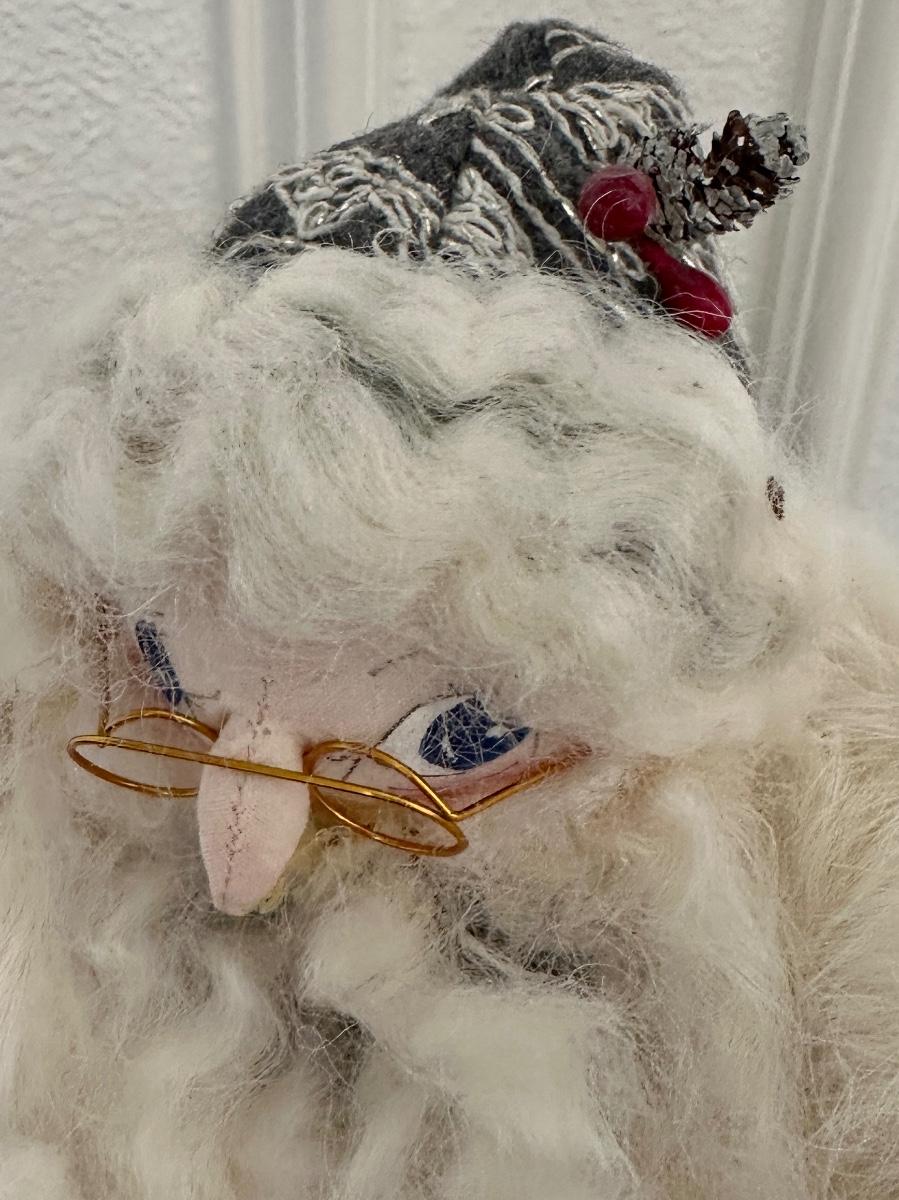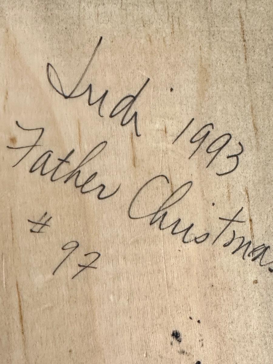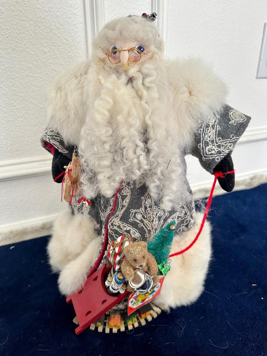 Original Design Santa by Judi. Hand Painted and crafted with some old fabrics and accessories. Real fur, 15 inches high.