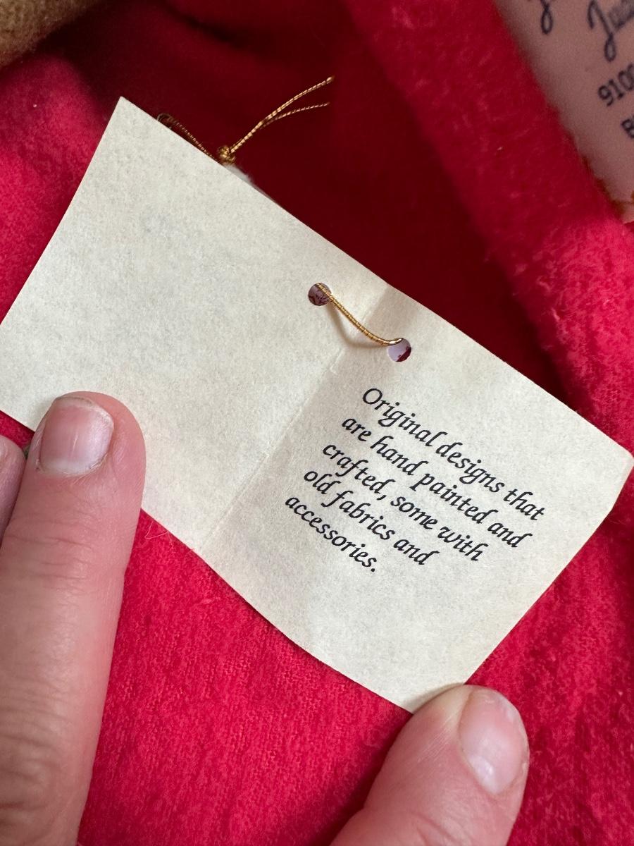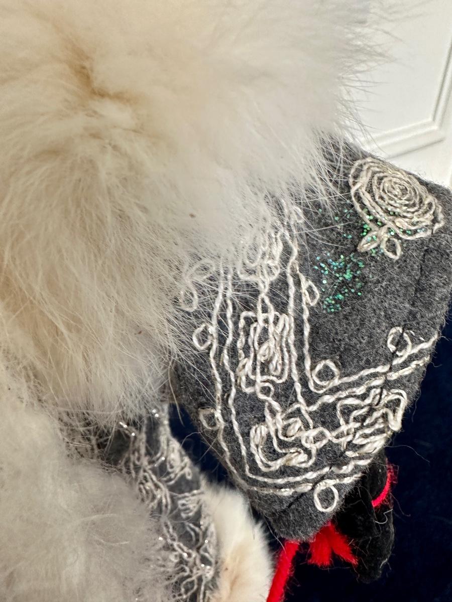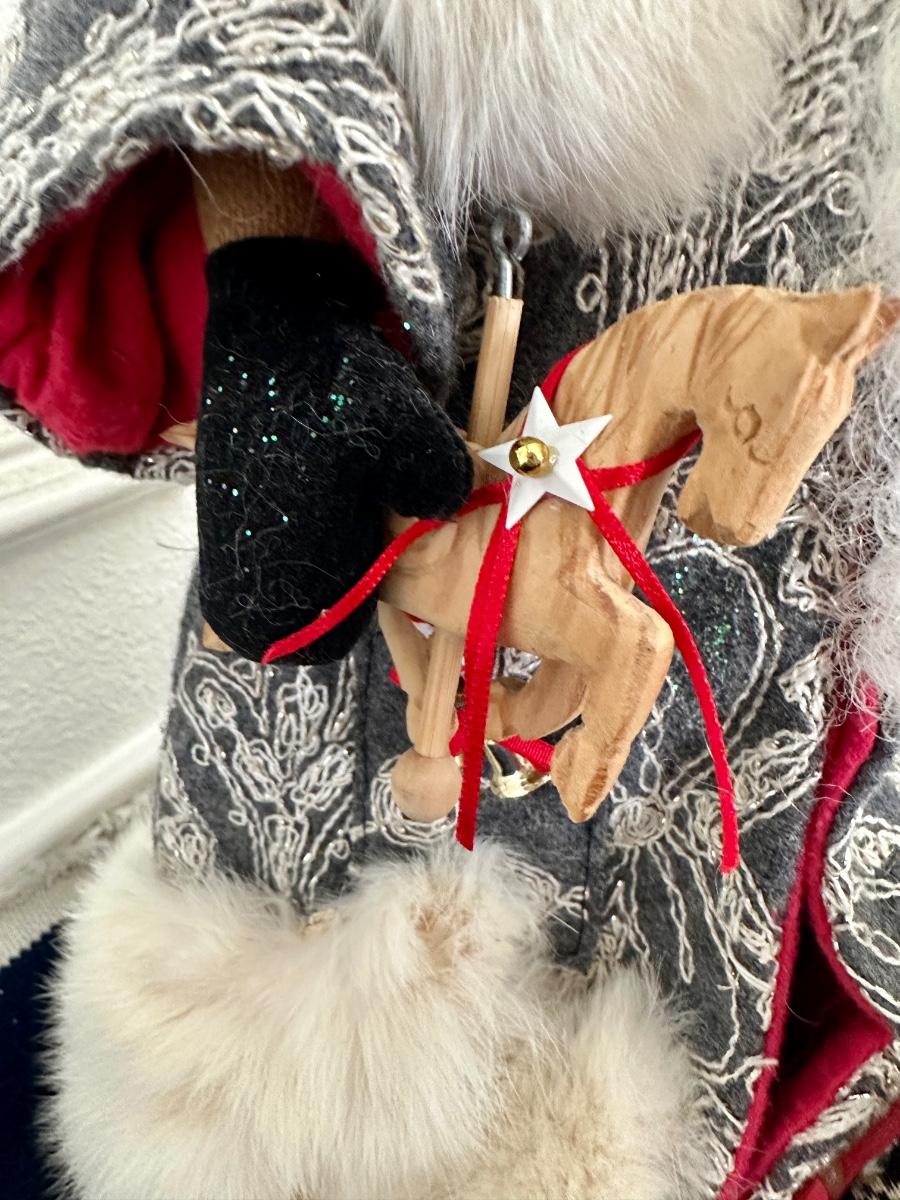 Original Design Santa by Judi. Hand Painted and crafted with some old fabrics and accessories. Real fur, 15 inches high.