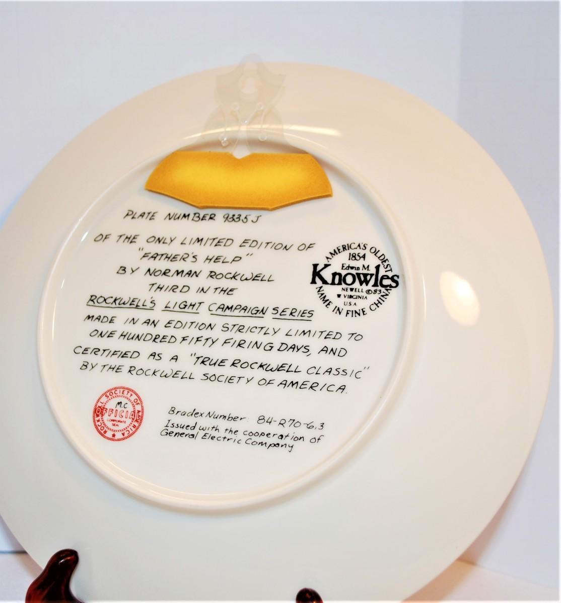 "Father's Help" by Artist Norman Rockwell - Includes: CERTIFICATE OF AUTHENTICITY, Plate #9335J, 8½" Diameter & from "Rockwell's Light Campaign" SeriesDate Closing 1986