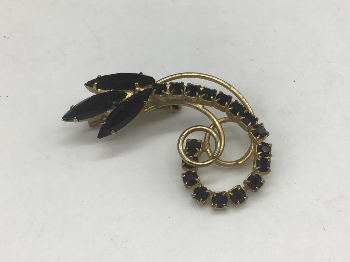 Fauceted Black Stone Type Vintage Brooch