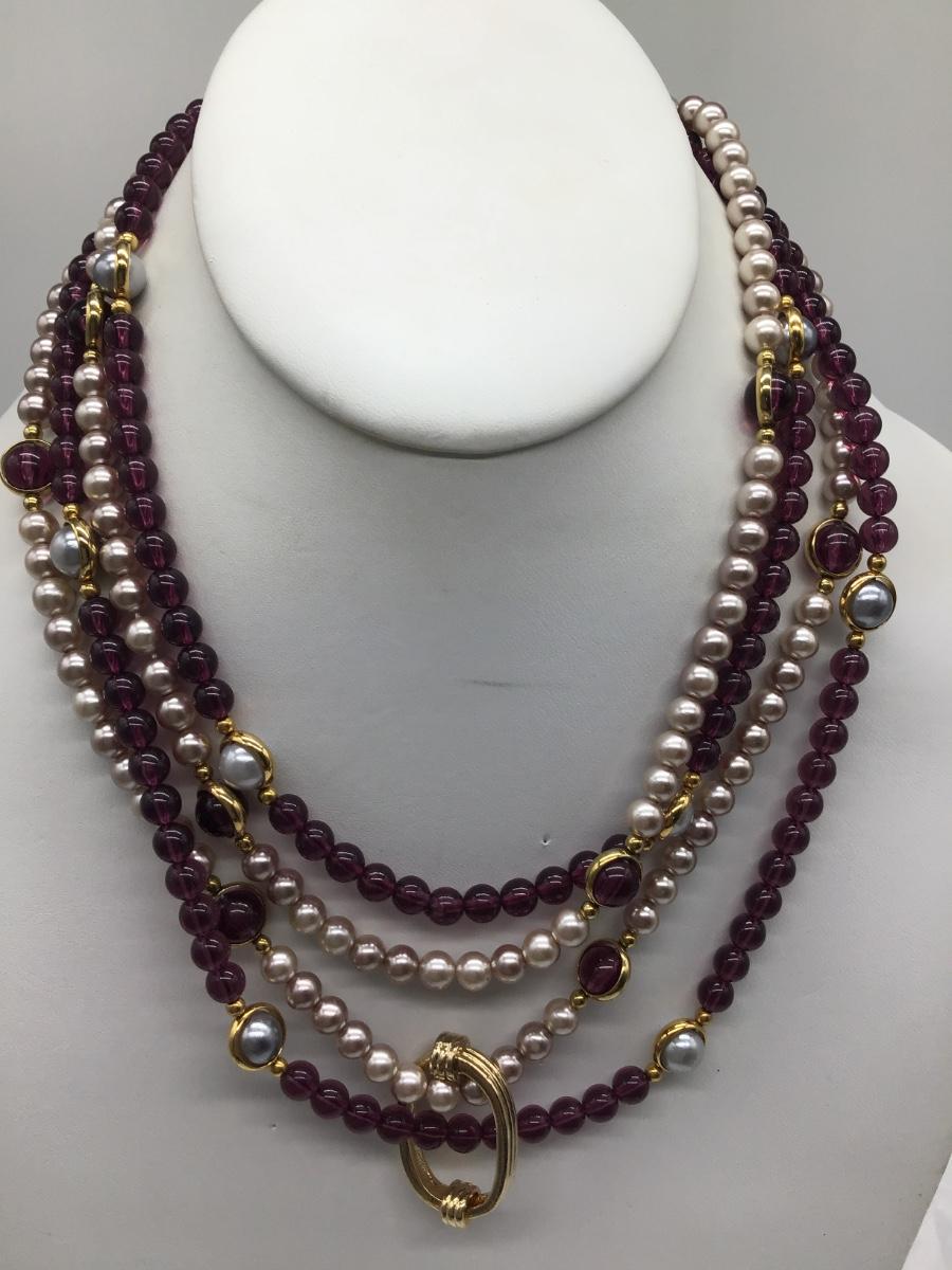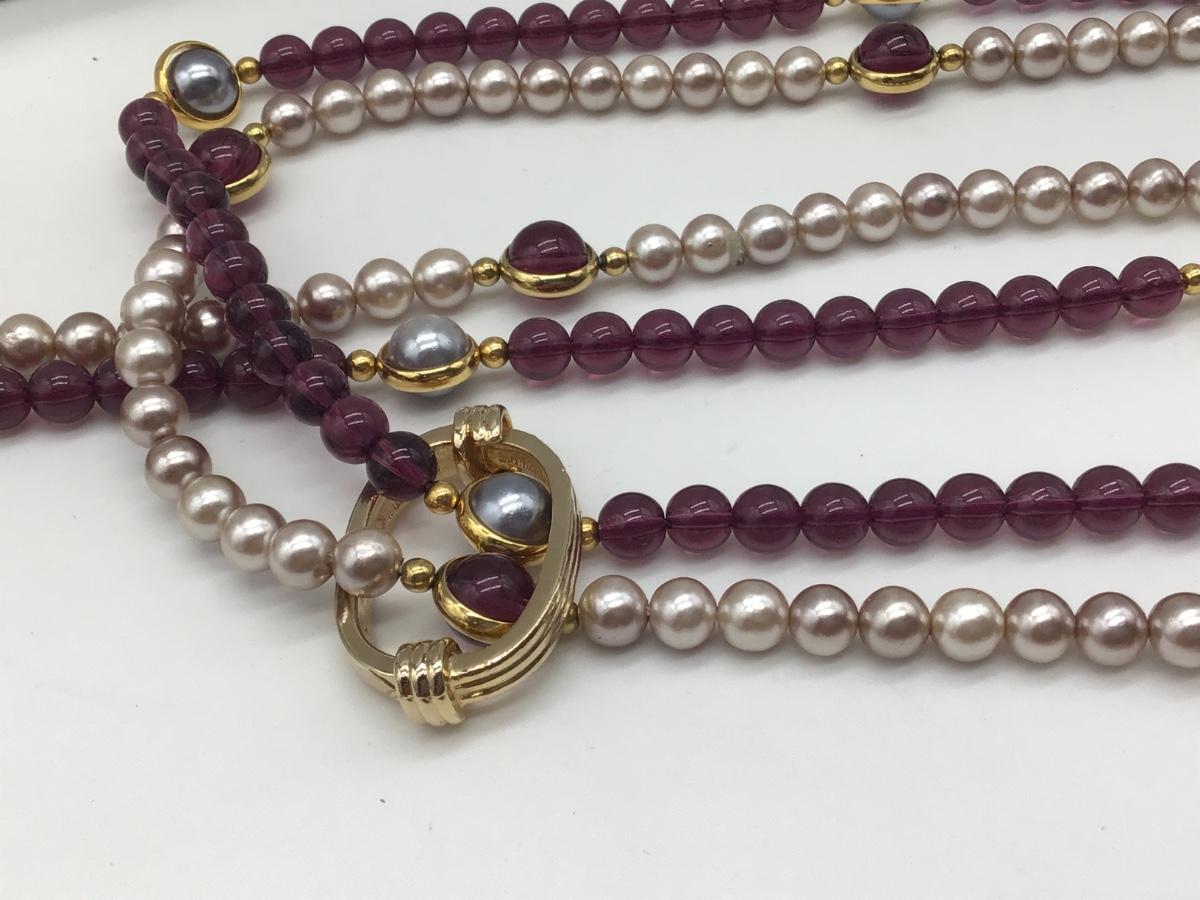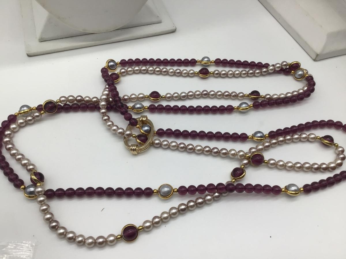 Faux 2 Strand Purple AND PEARL Rope Necklace Long
