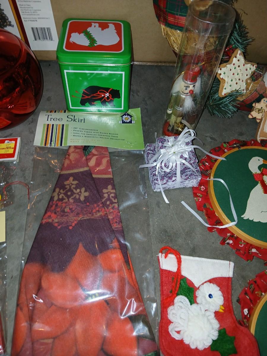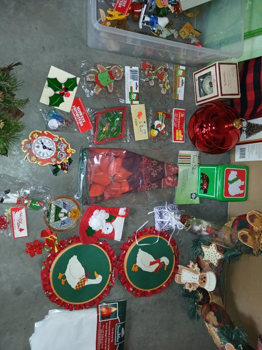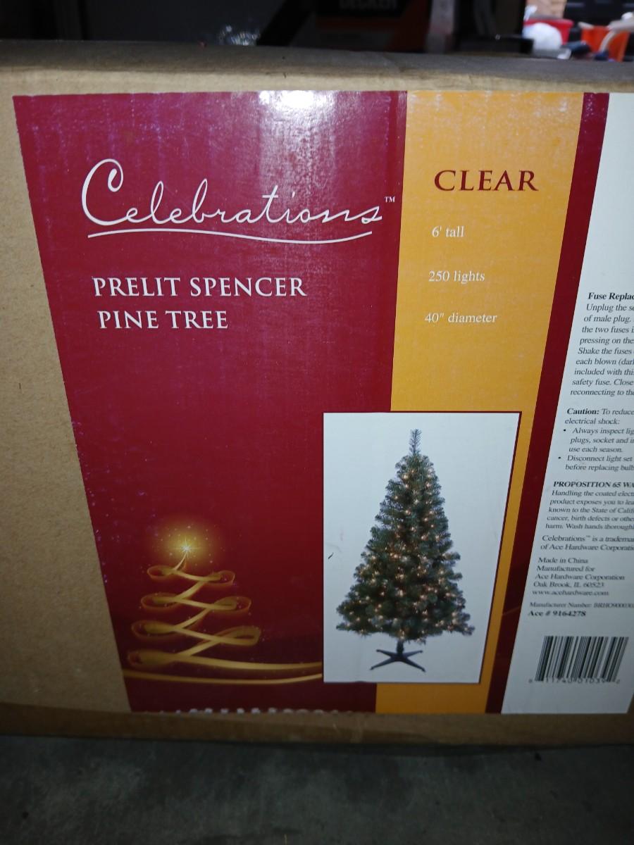 Faux 6' pre lit Christmas tree Spencer pine with decorations and other Christmas ornaments