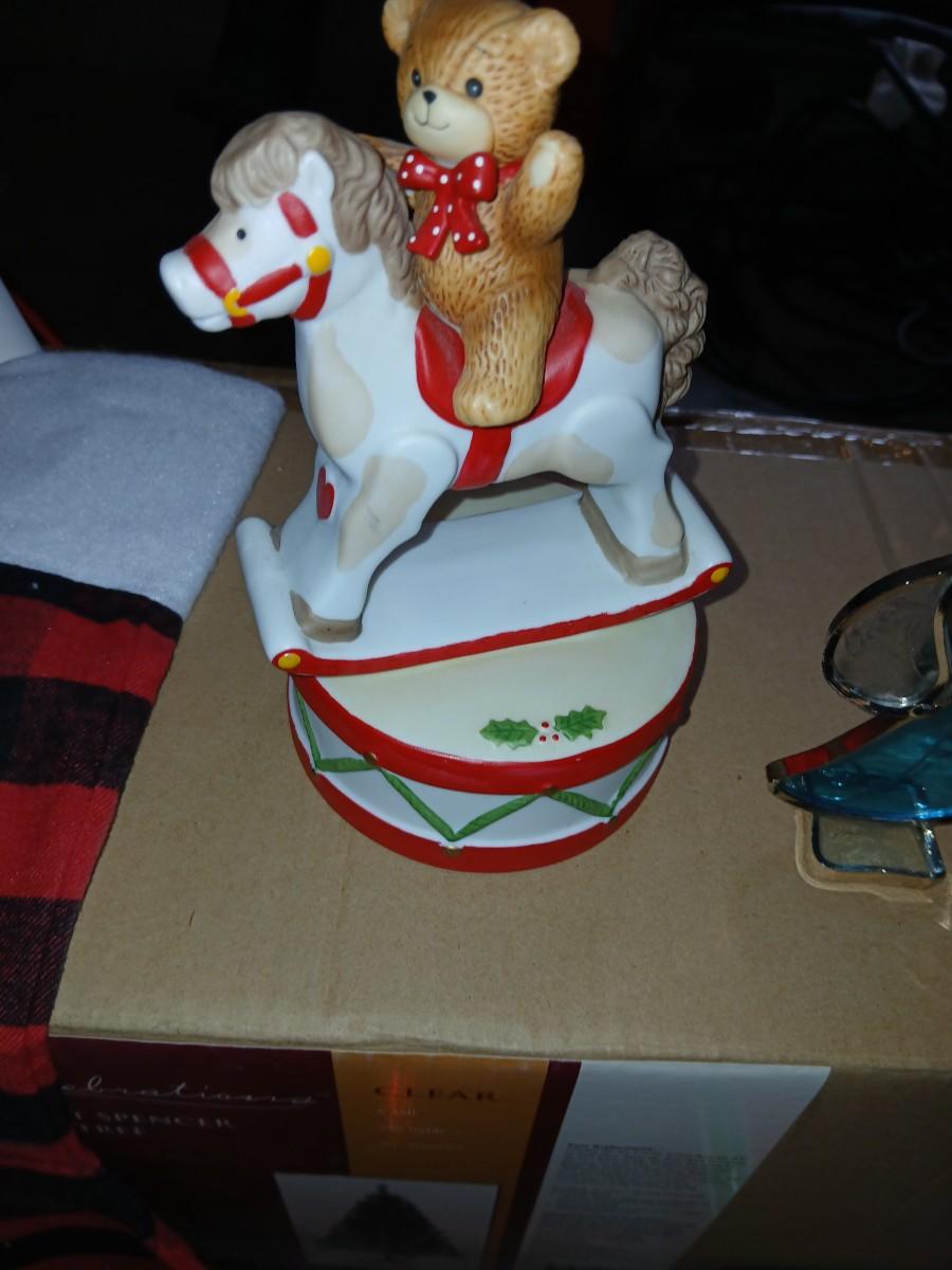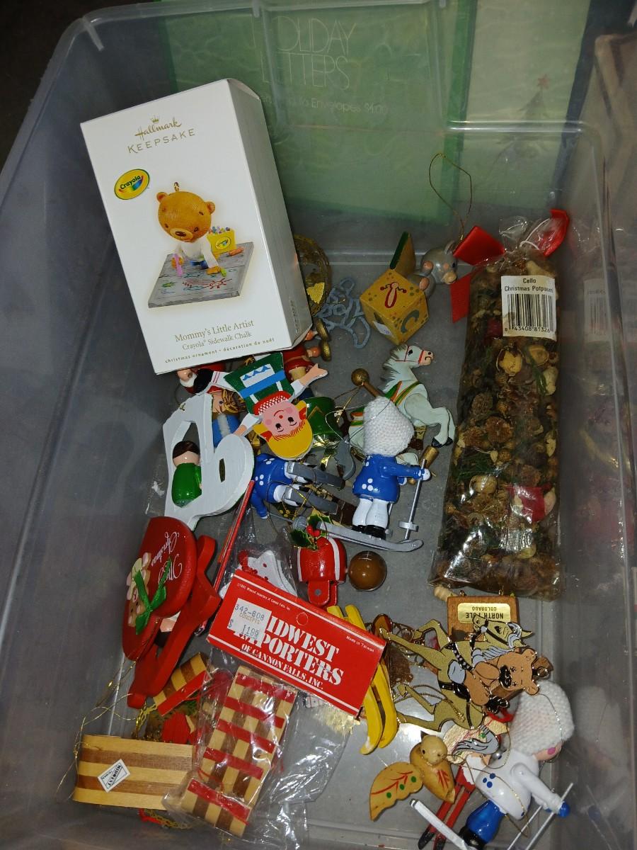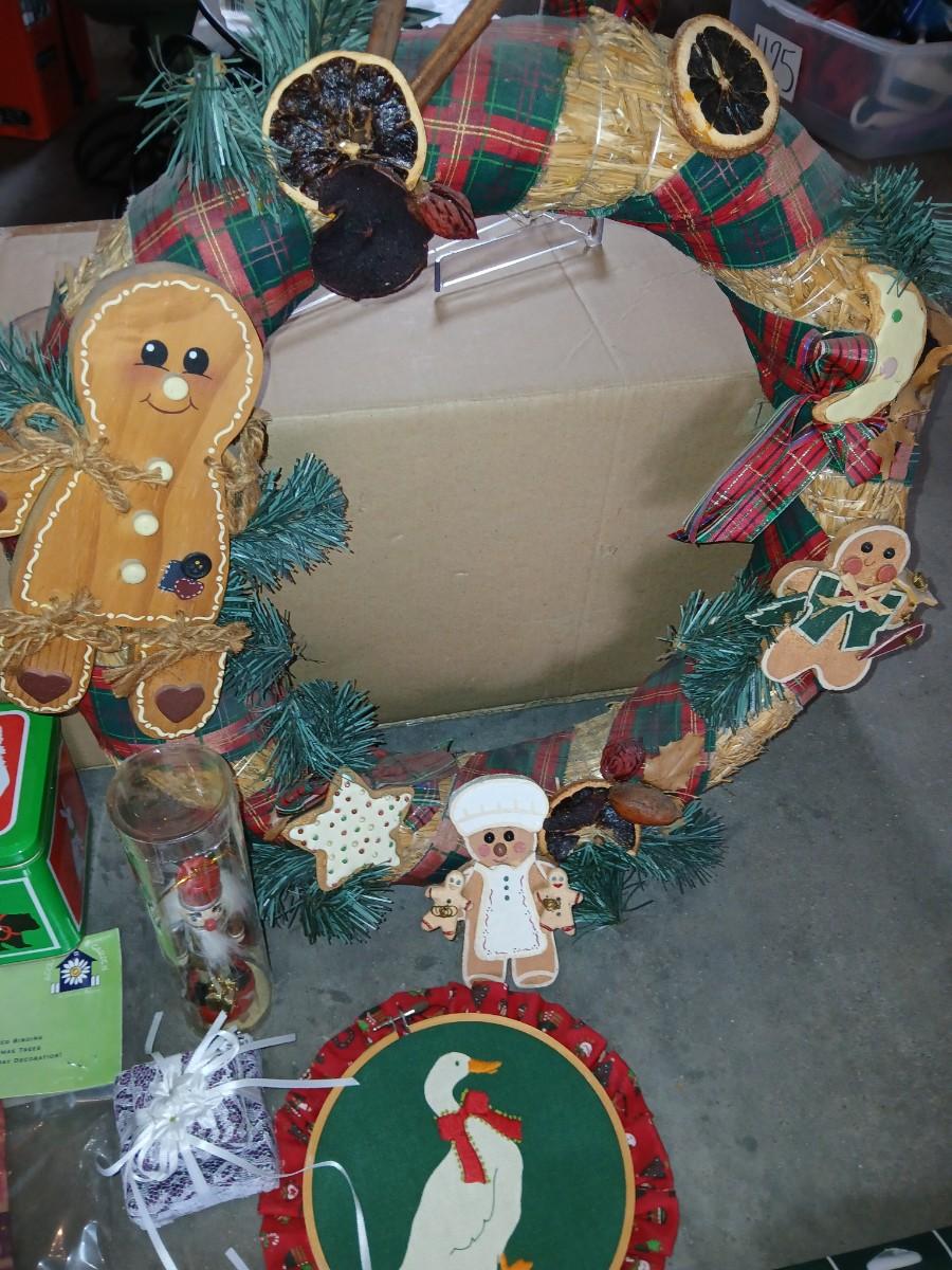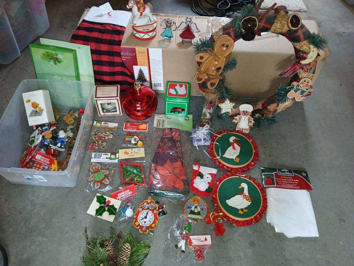 Faux 6' pre lit Christmas tree Spencer pine with decorations and other Christmas ornaments
