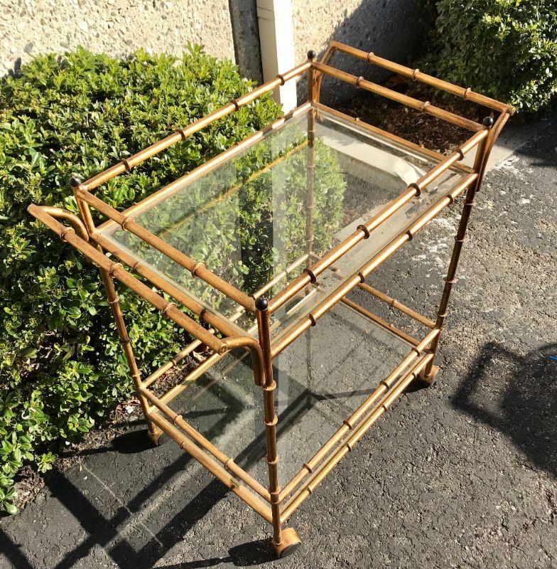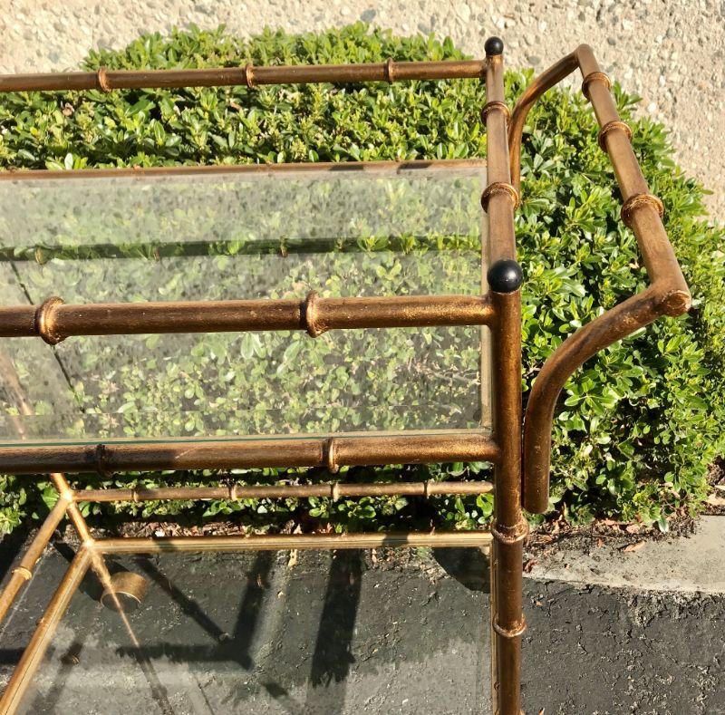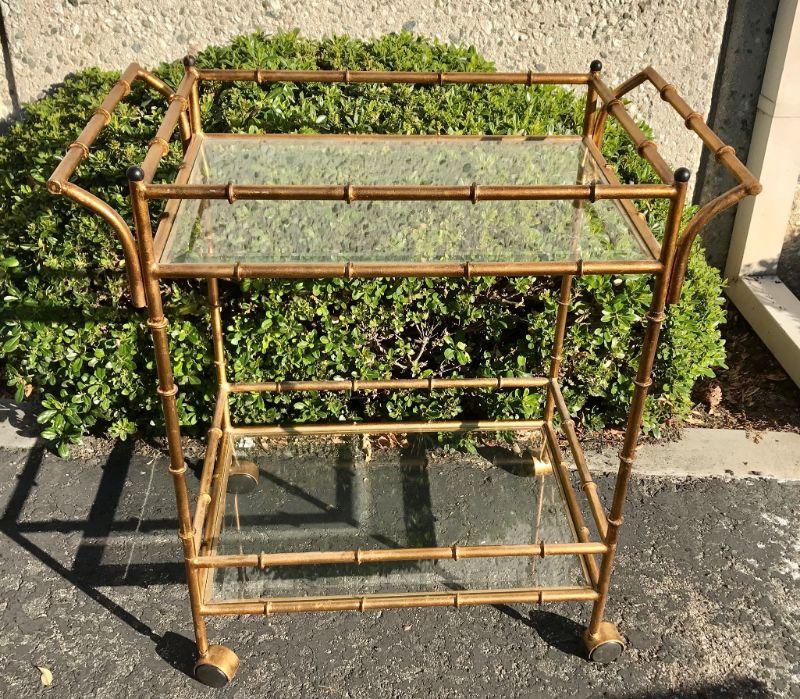 Faux Bamboo Bronze Brass Painted Metal wet-bar Drink Bar Cart YD#020-1220-00014