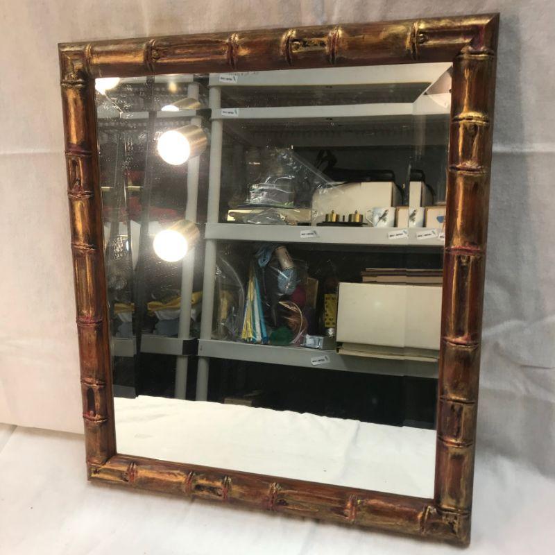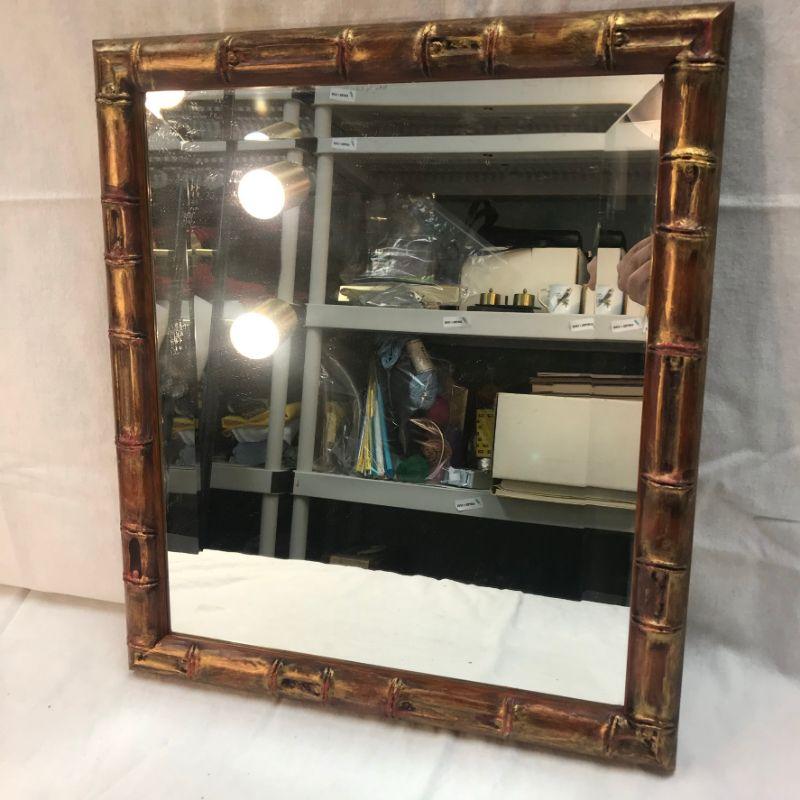 Faux bamboo framed wall mirror. Measures about 15"x17". Good condition.