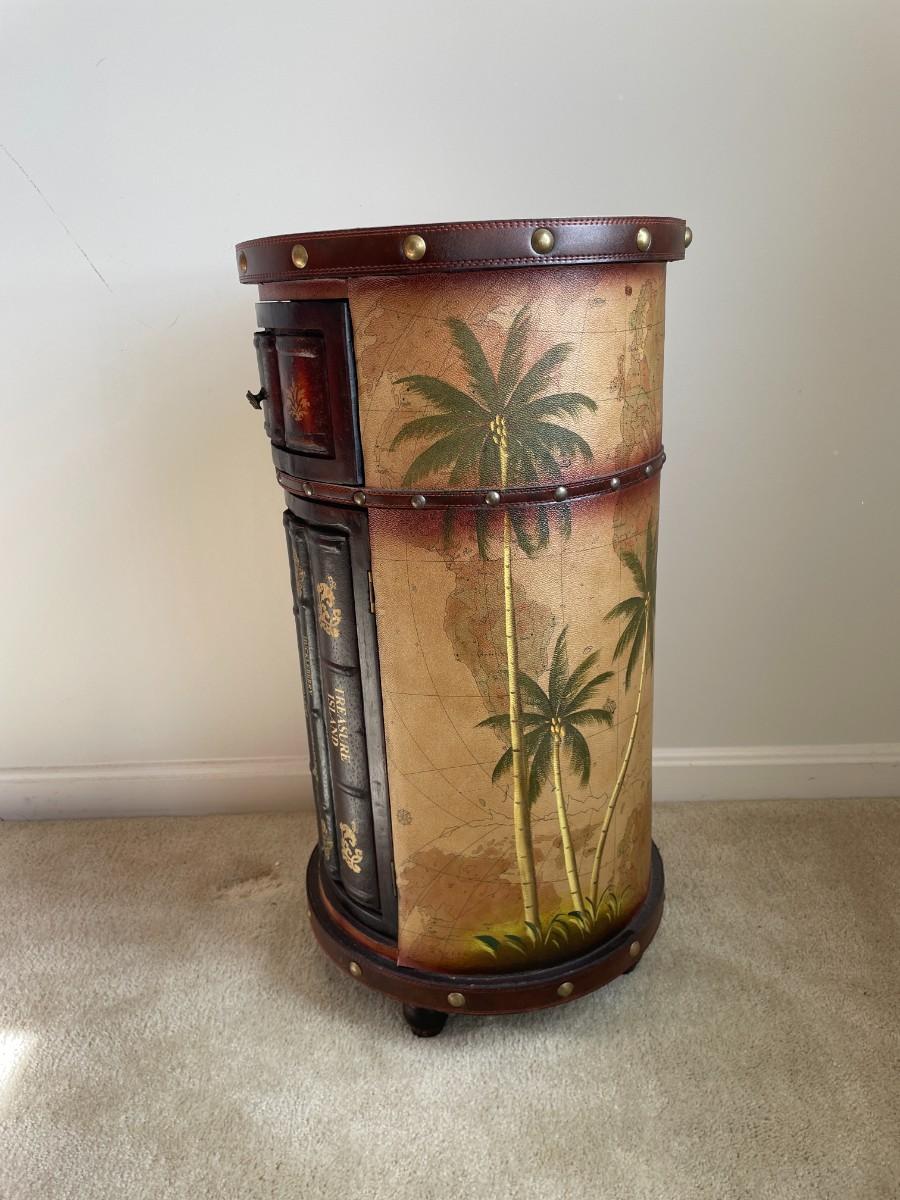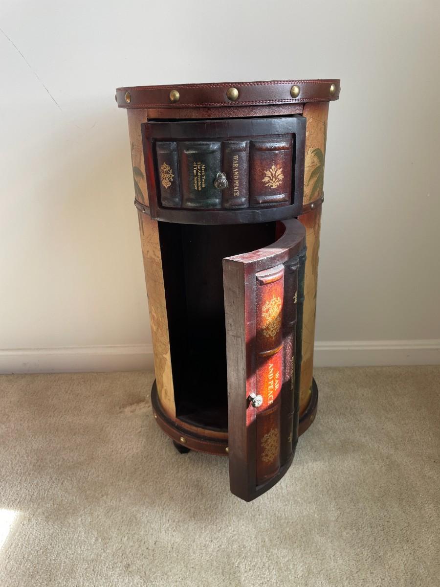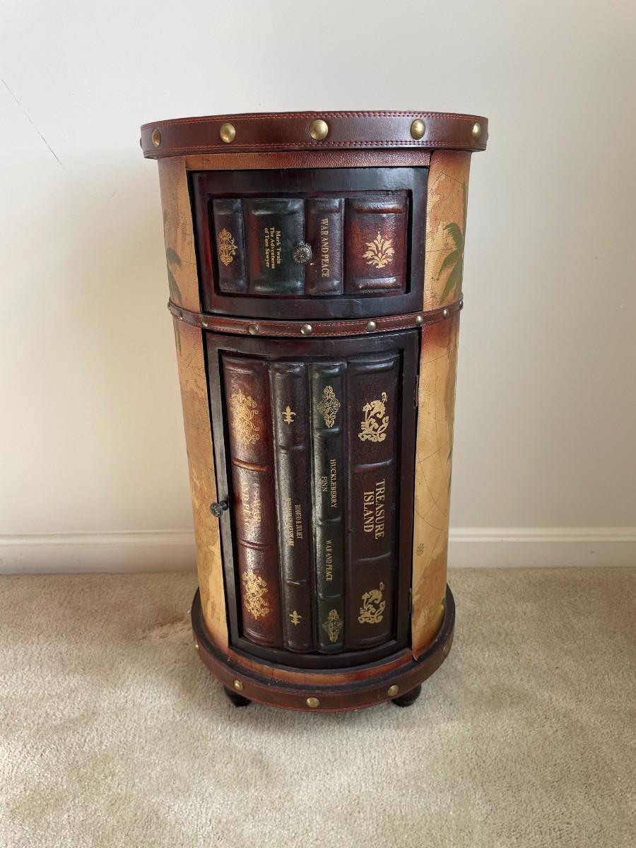 Faux Book Tooled Leather Wrapped Storage Side Table